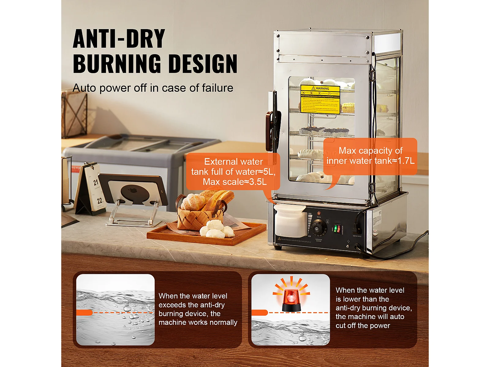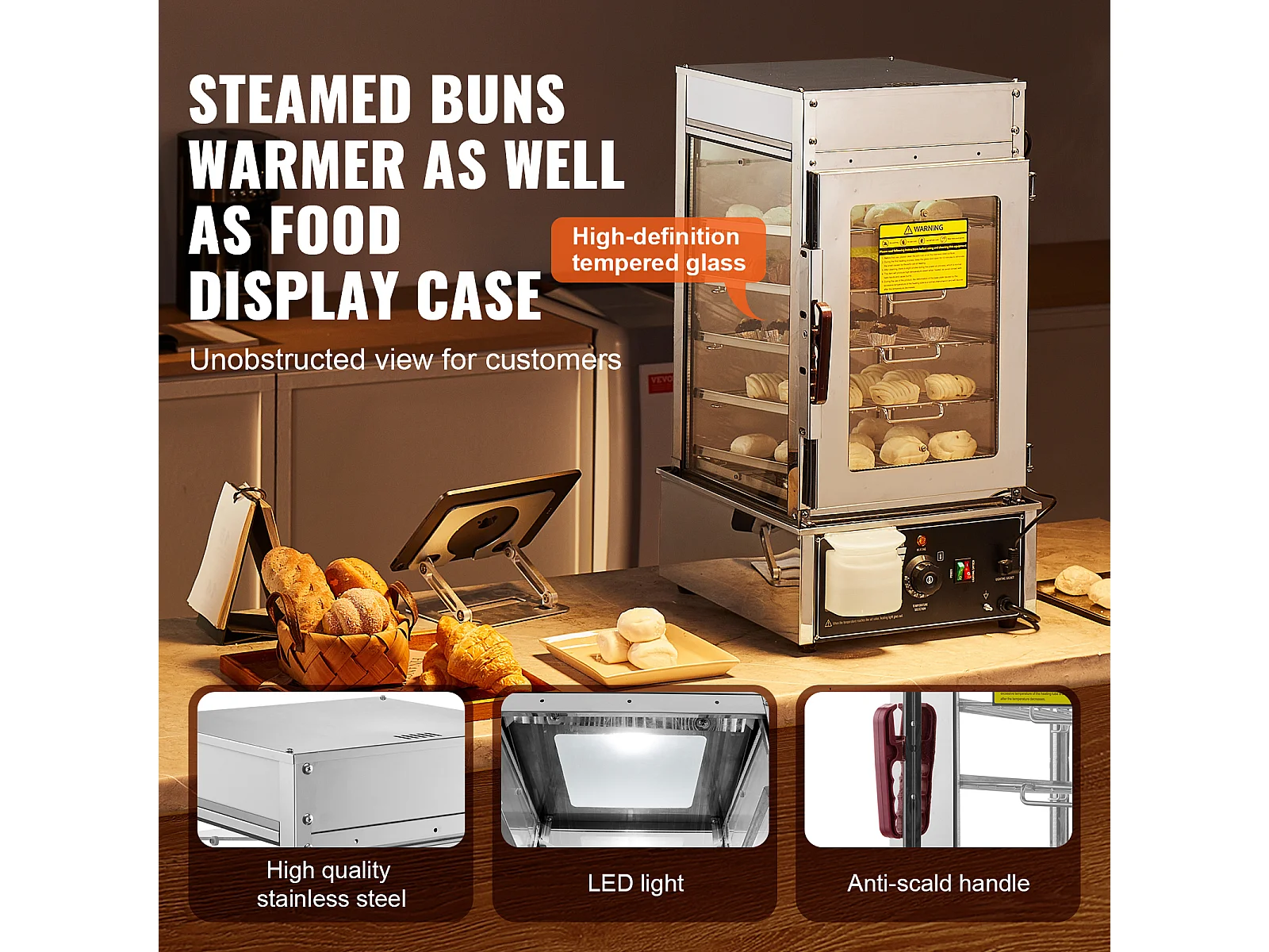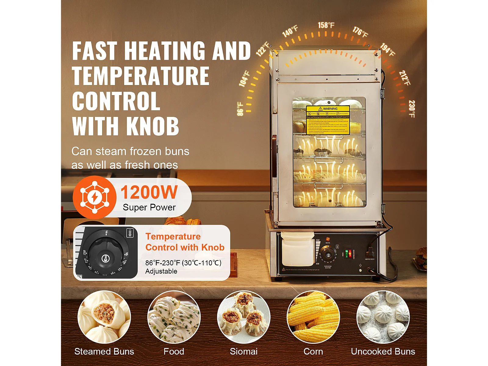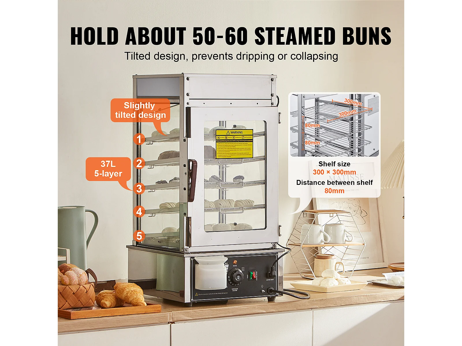 Vitrine Chauffante pour Aliments Commerciaux SucceBuy Cuiseur Vapeur Électrique à 5 Niveaux, Chauffage à la Vapeur pour Divers Aliments