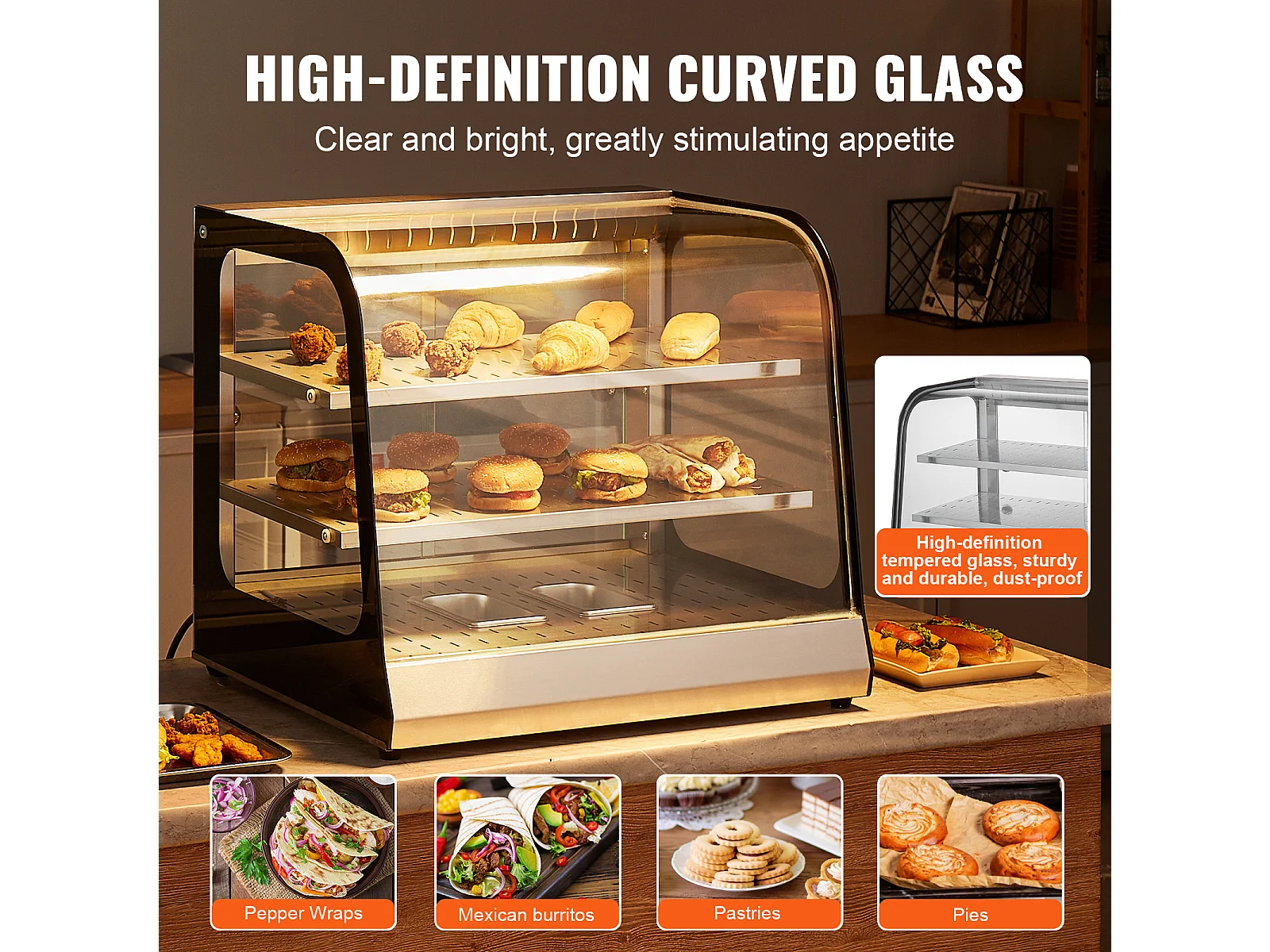 Vitrine Chauffante SucceBuy, Présentoir de Comptoir Chauffant Commercial à 3 niveaux avec Éclairage pour Pizza