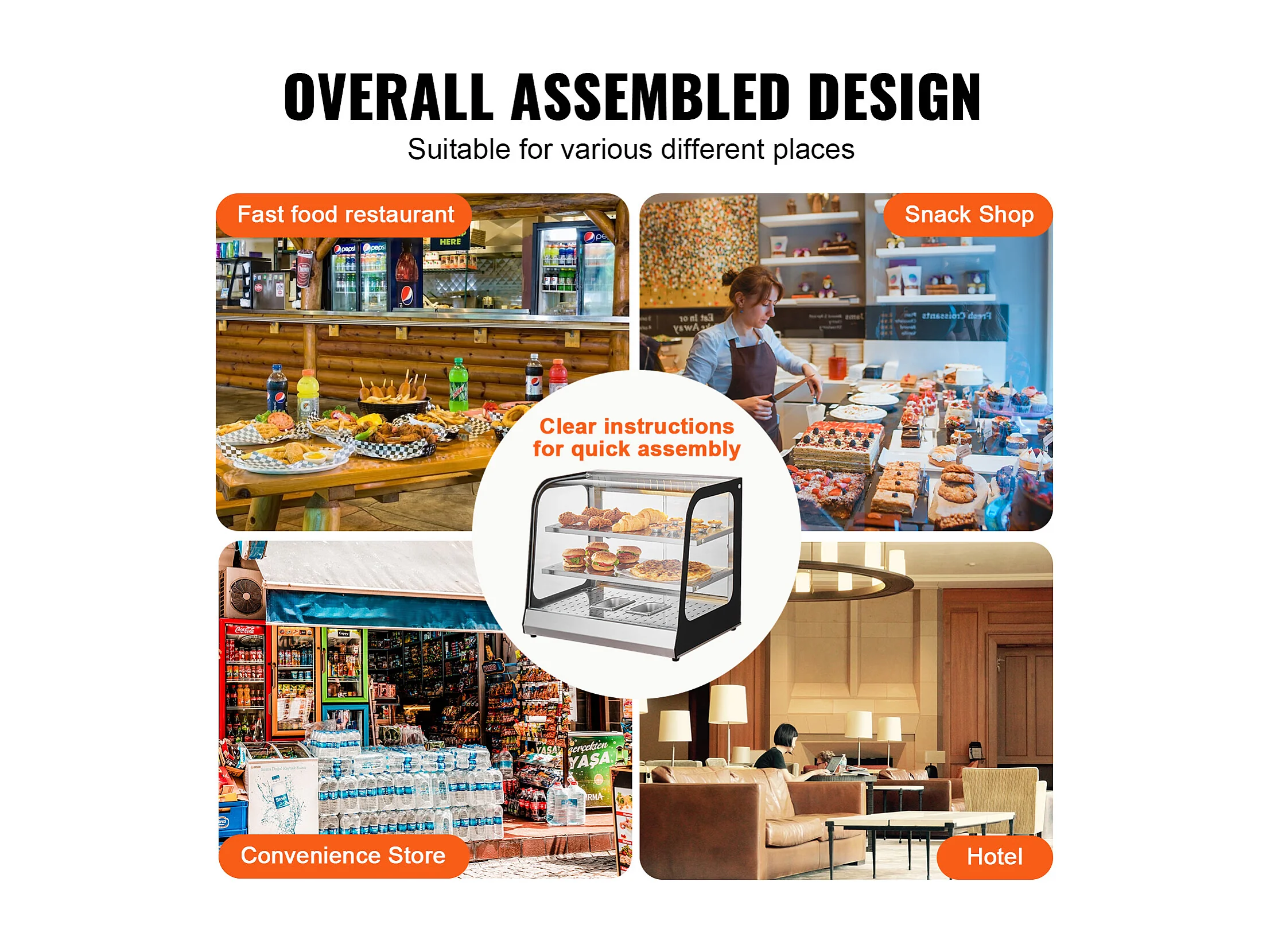 Vitrine Chauffante SucceBuy, Armoire à Pizza Commerciale à 3 Niveaux, pour Réchauffeur de Nourriture avec Lumière