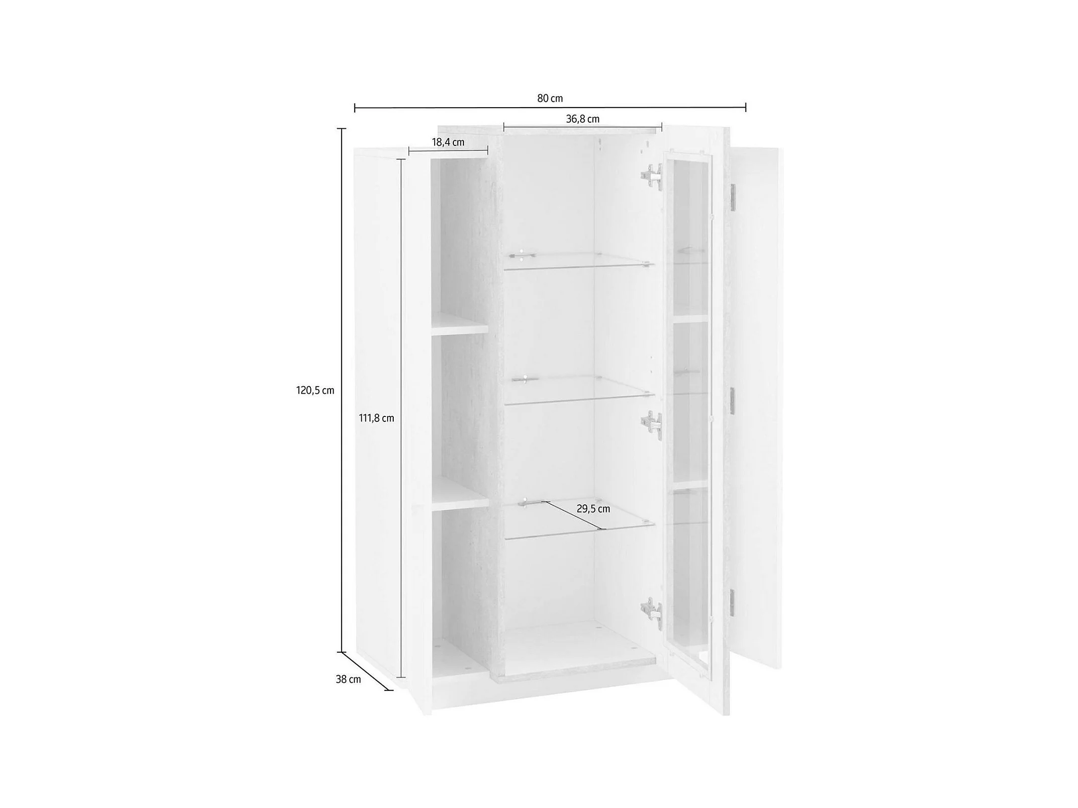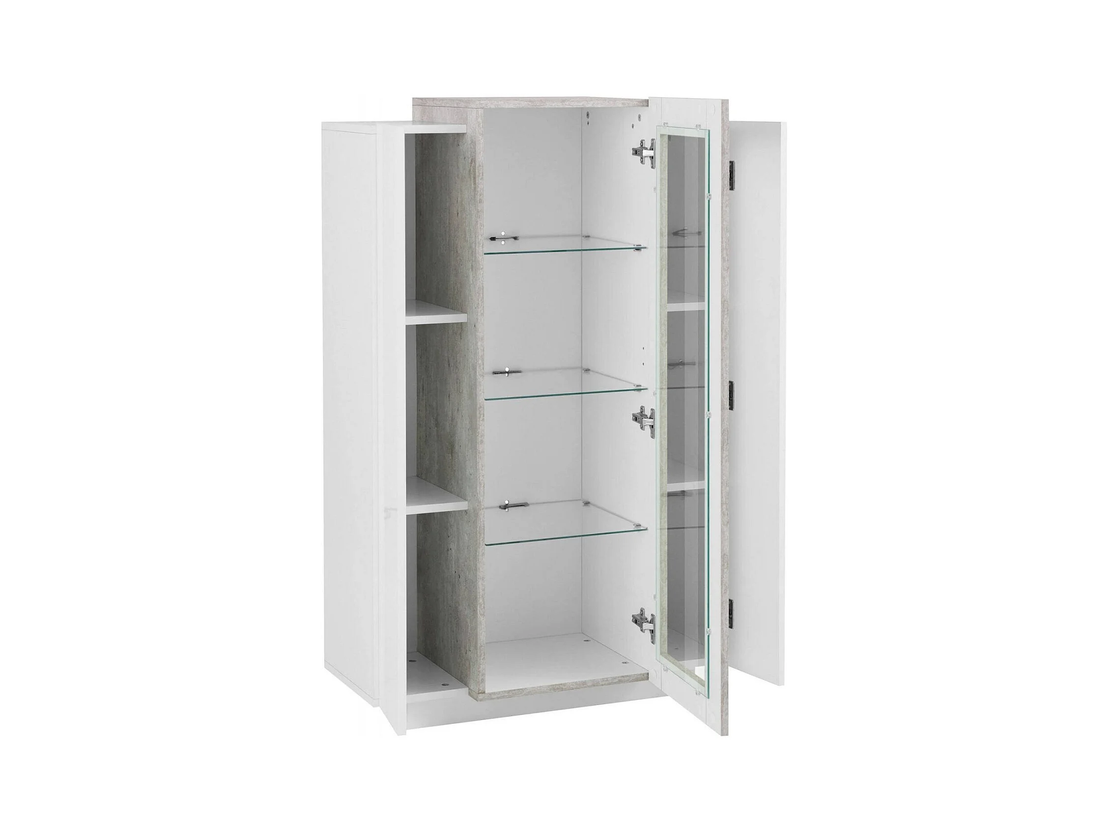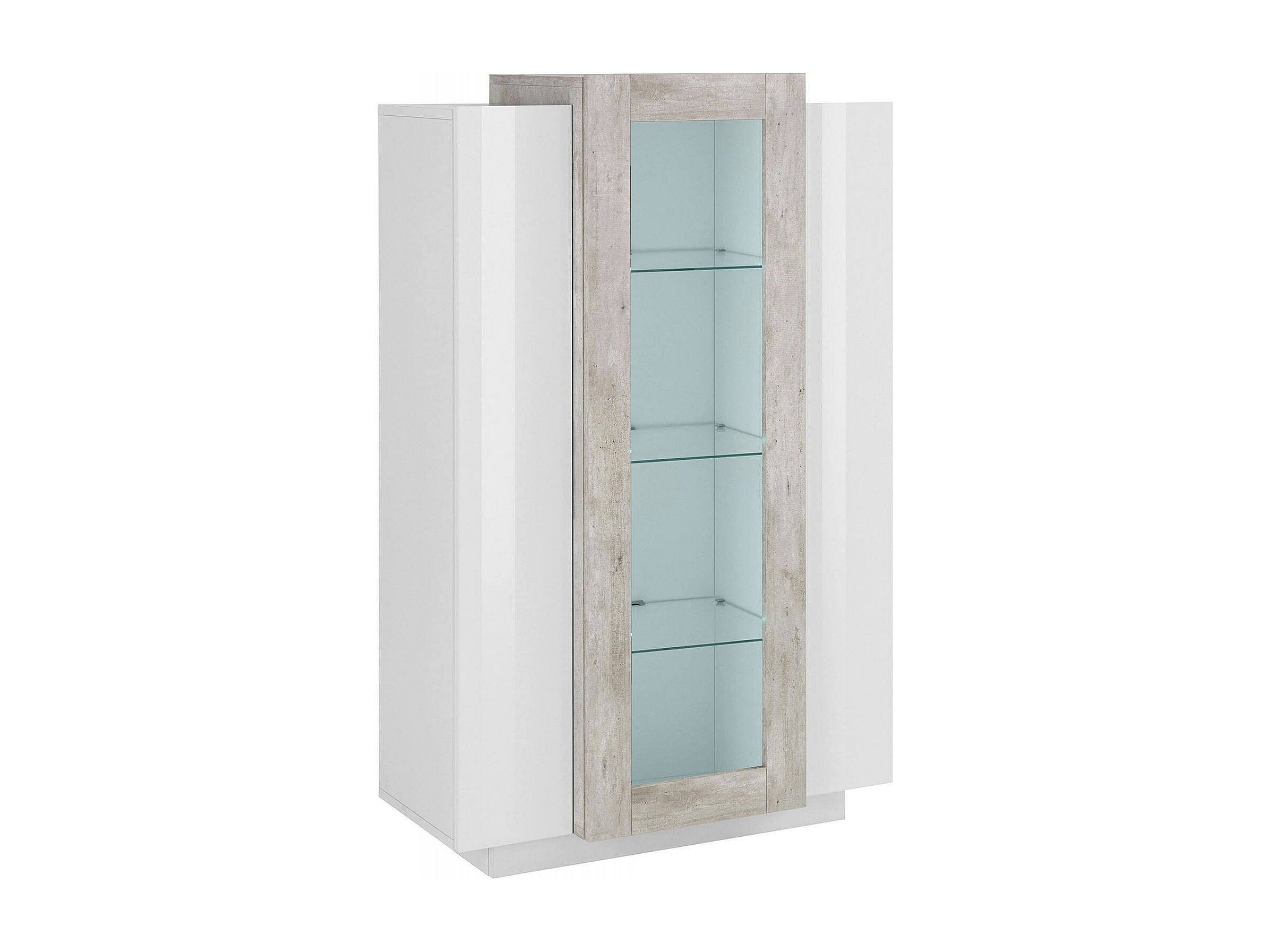 Vitrine Dfrutt, Buffet à trois portes, Meuble de salon polyvalent, 100% Made in Italy, 80x38h121 cm, Blanc brillant et ciment
