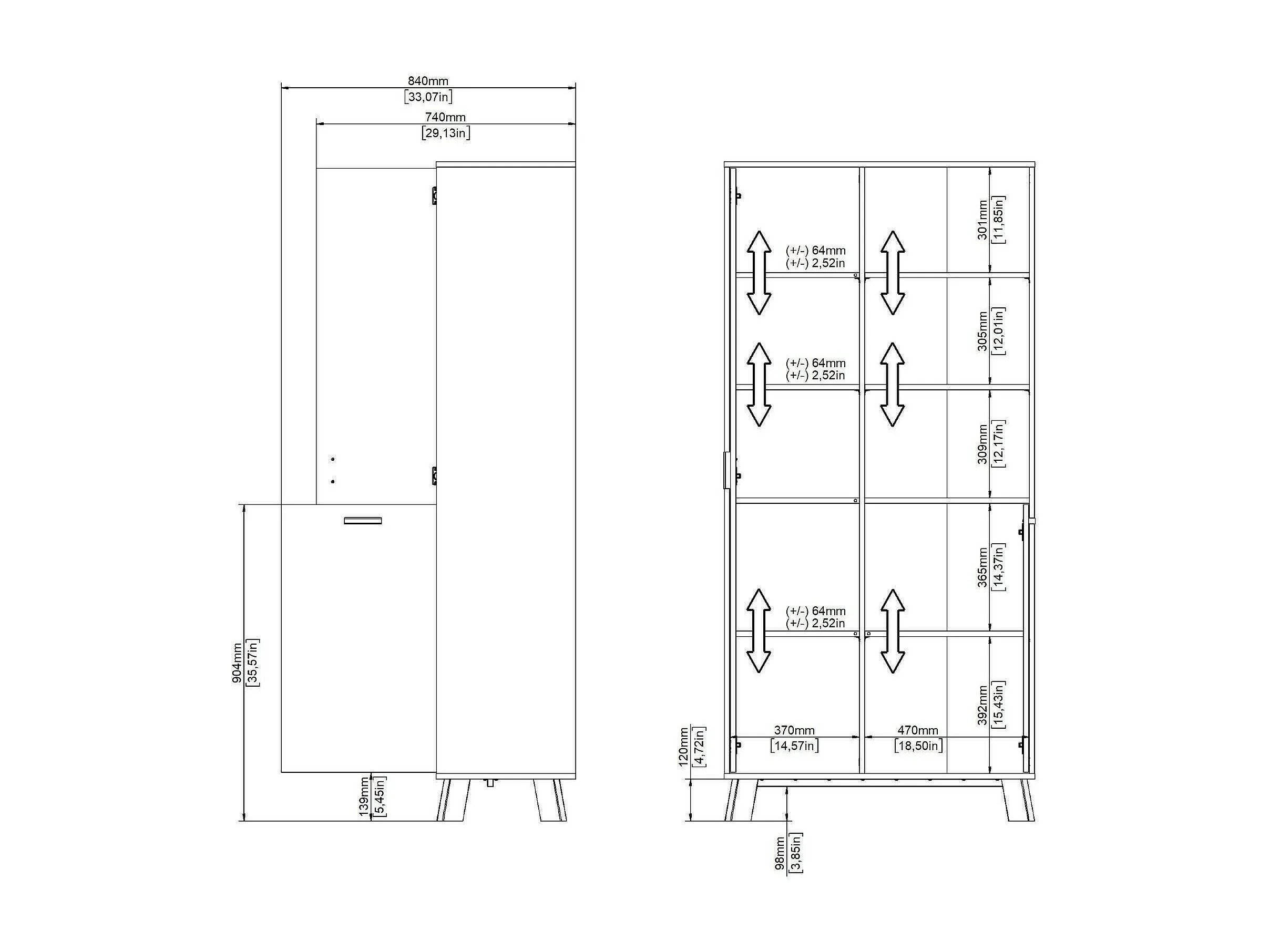 Vitrine Dvarrell, Buffet d'exposition, Vitrine polyvalente, Buffet de salon, 89x40 h188 cm, Chêne clair et Blanc