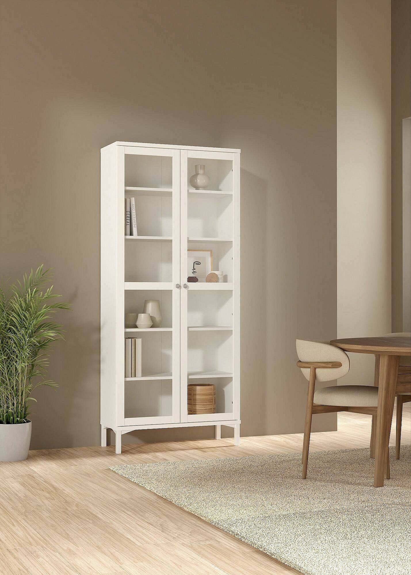 VITRINE - Buffet d'exposition, Vitrine polyvalente, Buffet de salon, 89x36 h203 cm, Blanc. STRUCTURE ET UTILISATION - Buffet haut de salon structuré avec détails en verre - Cet élément d'ameublement polyvalent est parfait pour meubler la salle à manger, le salon, le couloir, l'entrée ou le bureau, contenant soigneusement la vaisselle, les verres, les nappes, les couverts, les livres, les documents ou les objets décoratifs objets - Cette vitrine multifonctionnelle est idéale pour présenter avec élégance vos trésors les plus précieux, ajoutant du charme et de la sophistication à votre salon, tout en affichant fièrement vos collections. QUALITÉ ET DESIGN - Meuble au design moderne et élégant, parfait pour meubler un environnement contemporain et lumineux - Idéal pour ceux qui recherchent des solutions fonctionnelles et peu encombrantes, ce produit est parfait pour les maisons et les appartements de toutes tailles - Garantie de deux ans à compter de la date d'achat. CARACTÉRISTIQUES TECHNIQUES - Accessoire d'ameublement polyvalent, conçu pour une intégration facile avec d'autres meubles - Emballage résistant, conçu pour le commerce électronique - Matériau: Panneau de particules mélaminé - Informations supplémentaires: Article certifié EPA 40 CFR TSCA - Libération de formaldéhyde conforme aux directives IOS/MAT/0181/EN 17342 - Démonté - Equipé d'un kit de montage - Deux portes battantes - Porte avec détail en verre. DIMENSIONS EN CM - Vitrine : Longueur: 88,7 Largeur: 36,25 Hauteur: 202,8 - Dimensions supplémentaires: Ouverture de la porte : 43,8 cm