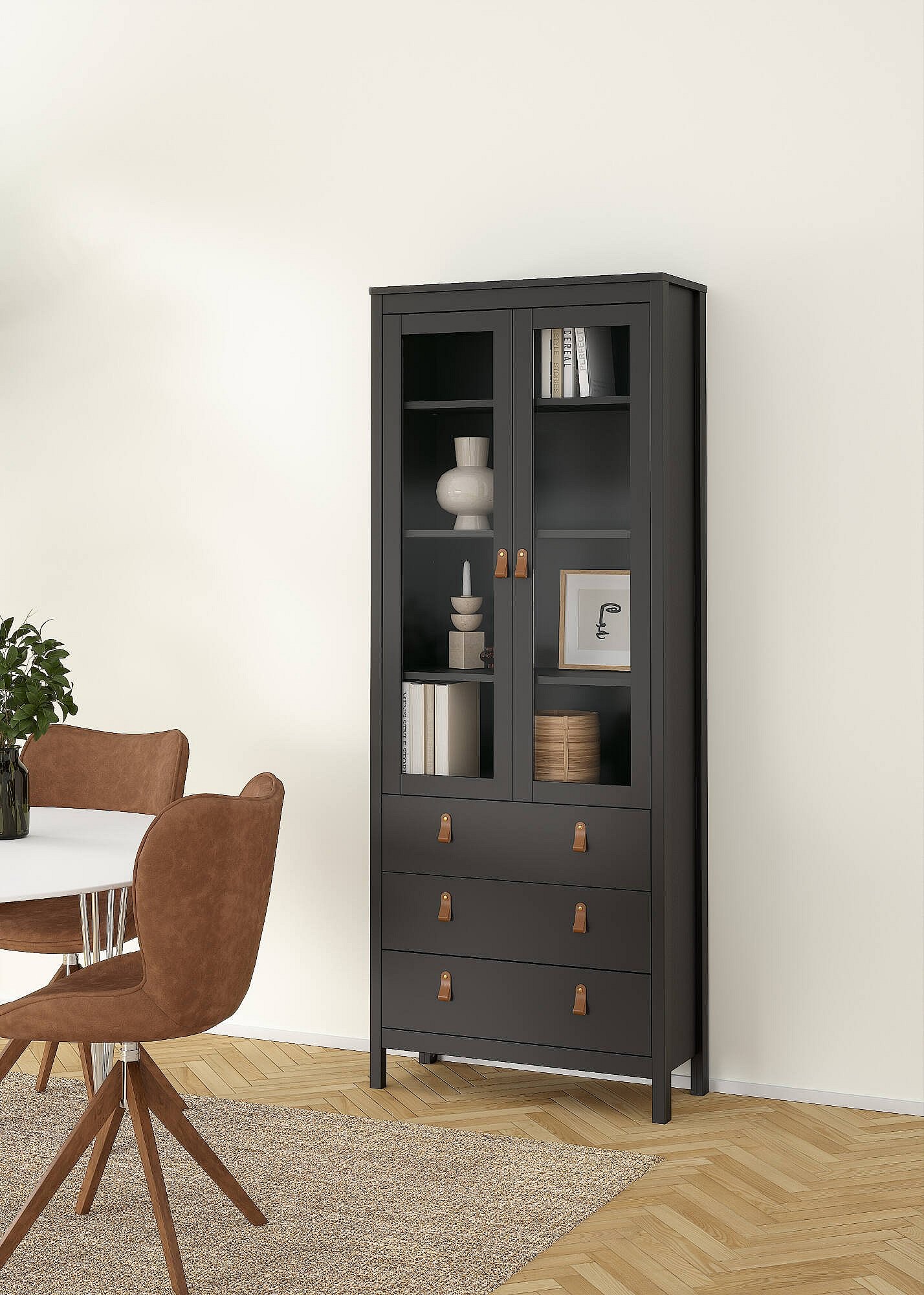 Vitrine à deux portes - noir/chêne Evoke motif à chevrons - BOULIA