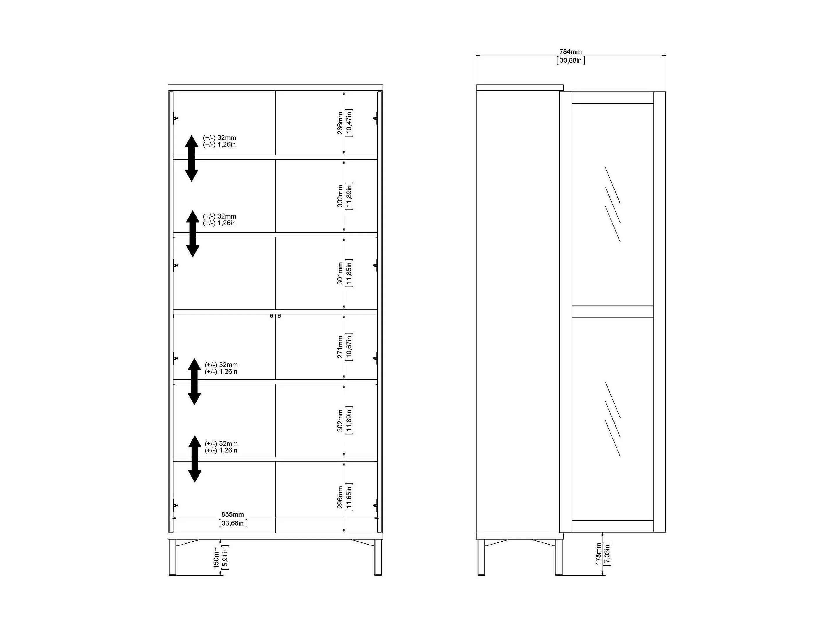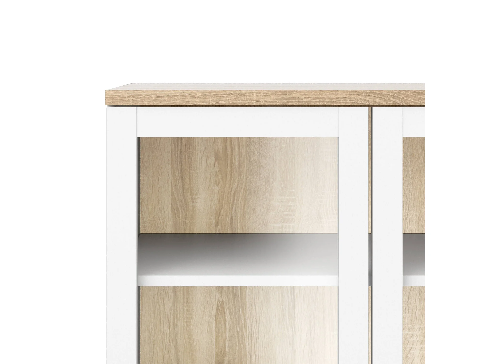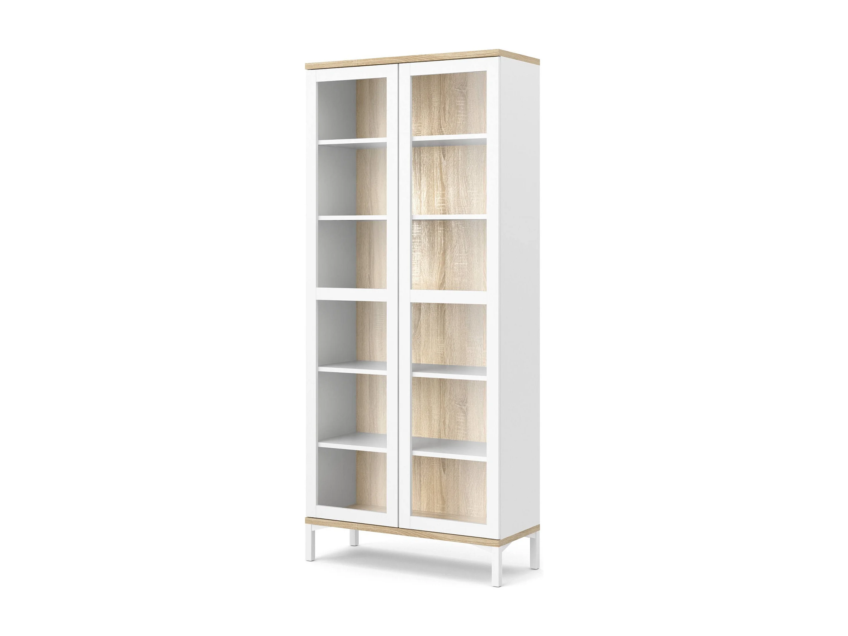 Vitrine Dvecchi, Buffet d'exposition, Vitrine polyvalente, Buffet de salon, 89x36 h203 cm, Blanc et chêne