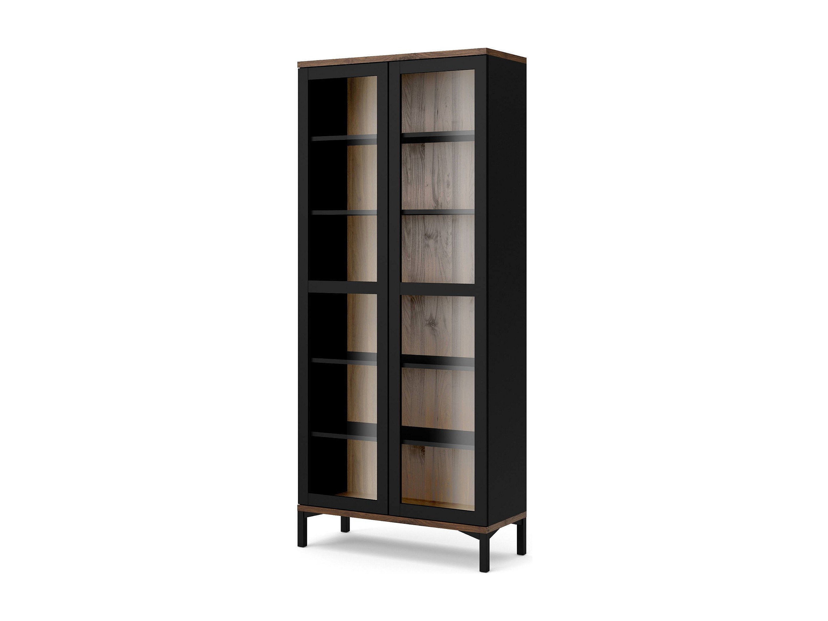 Vitrine Dvell, Buffet d'exposition, Vitrine polyvalente, Buffet de salon, 102x40 h162 cm, Noir et Noyer