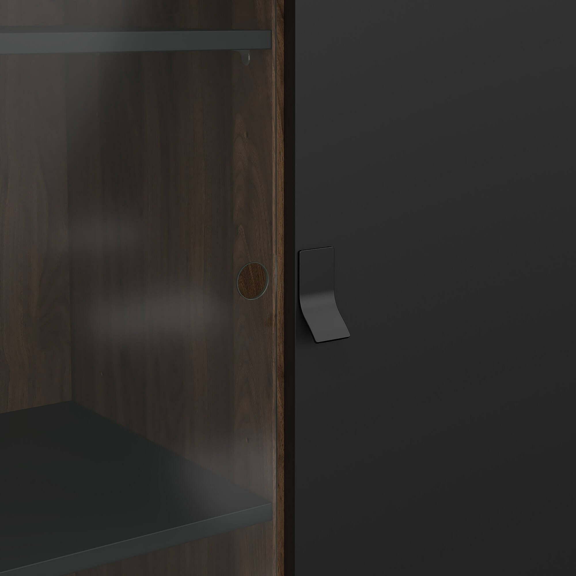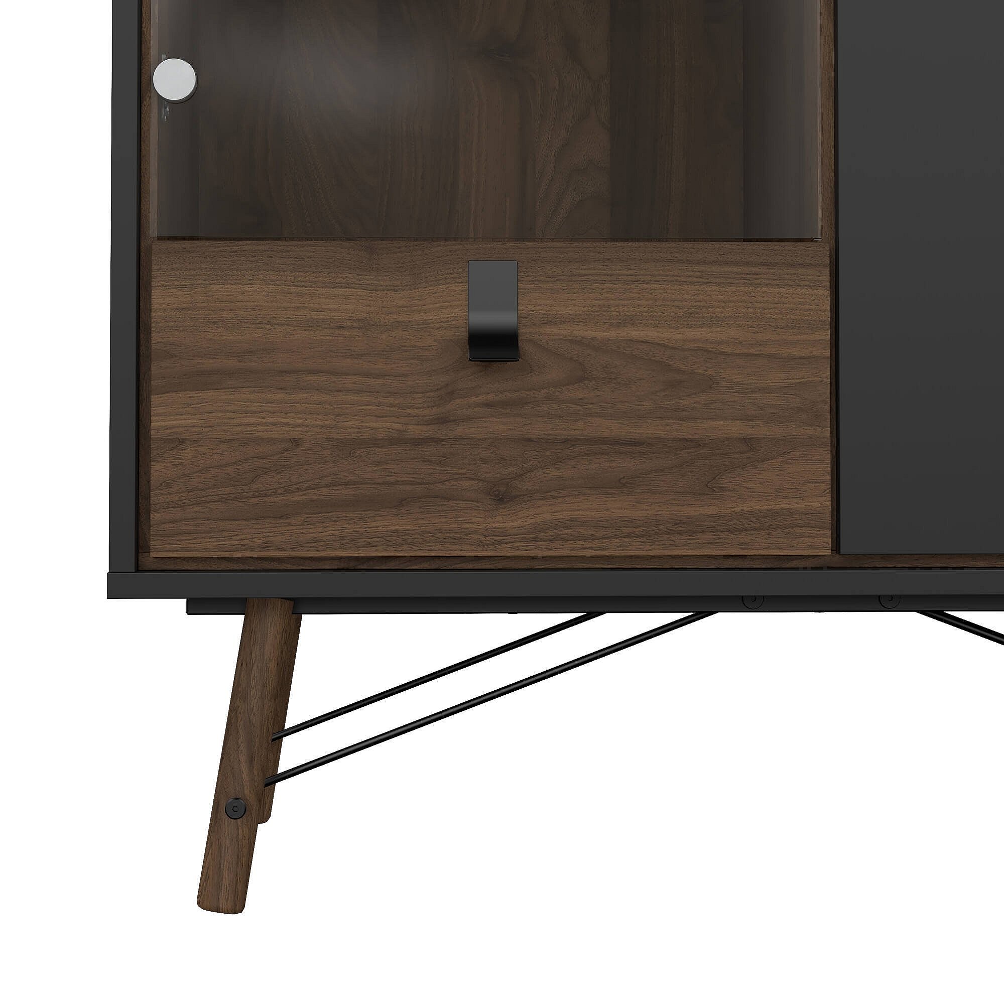 Vitrine Dvell, Buffet d'exposition, Vitrine polyvalente, Buffet de salon, 102x40 h162 cm, Noir et Noyer