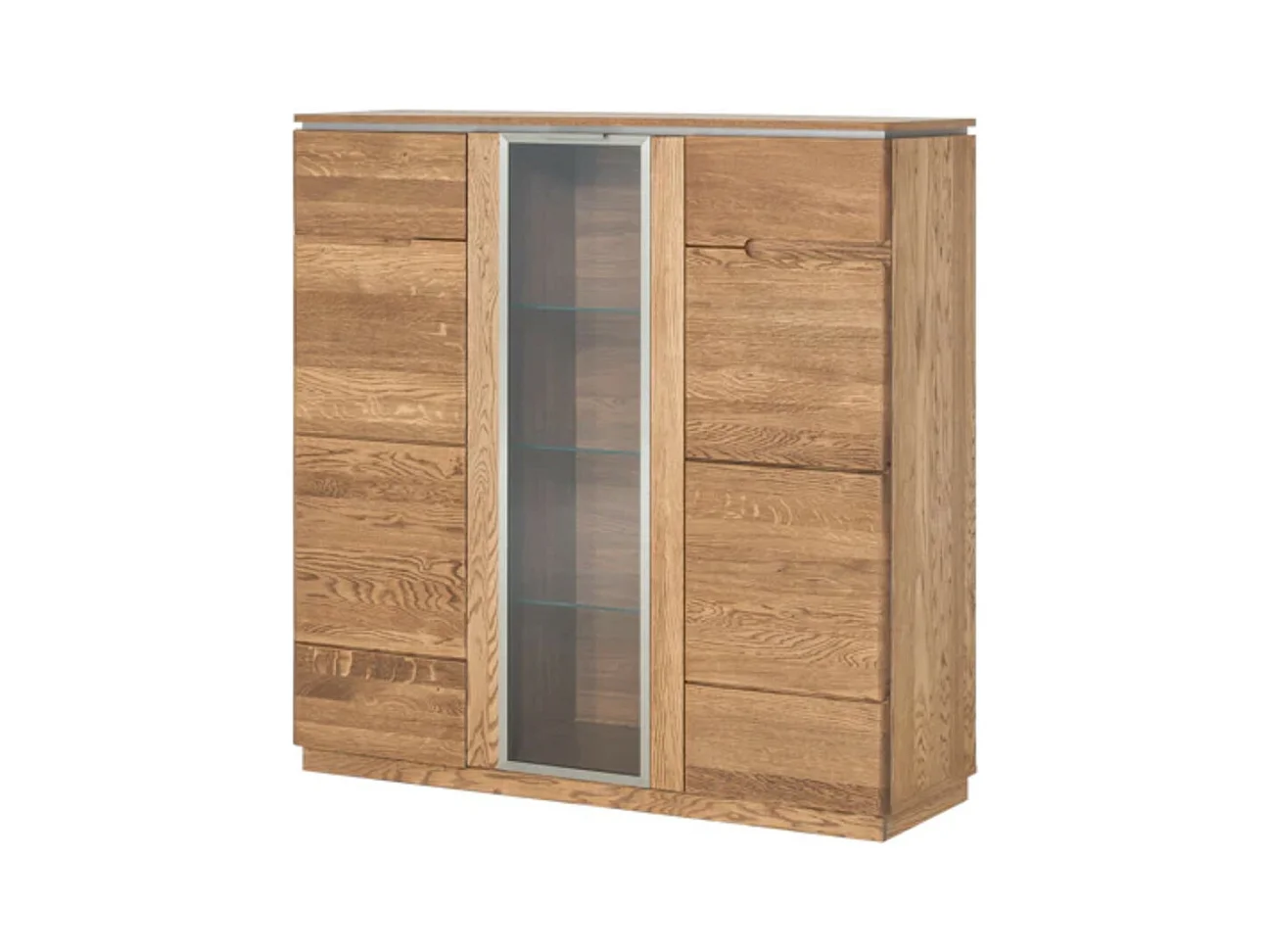 Vitrine moderne 4 portes 1 tiroir chêne clair Italino 105cm