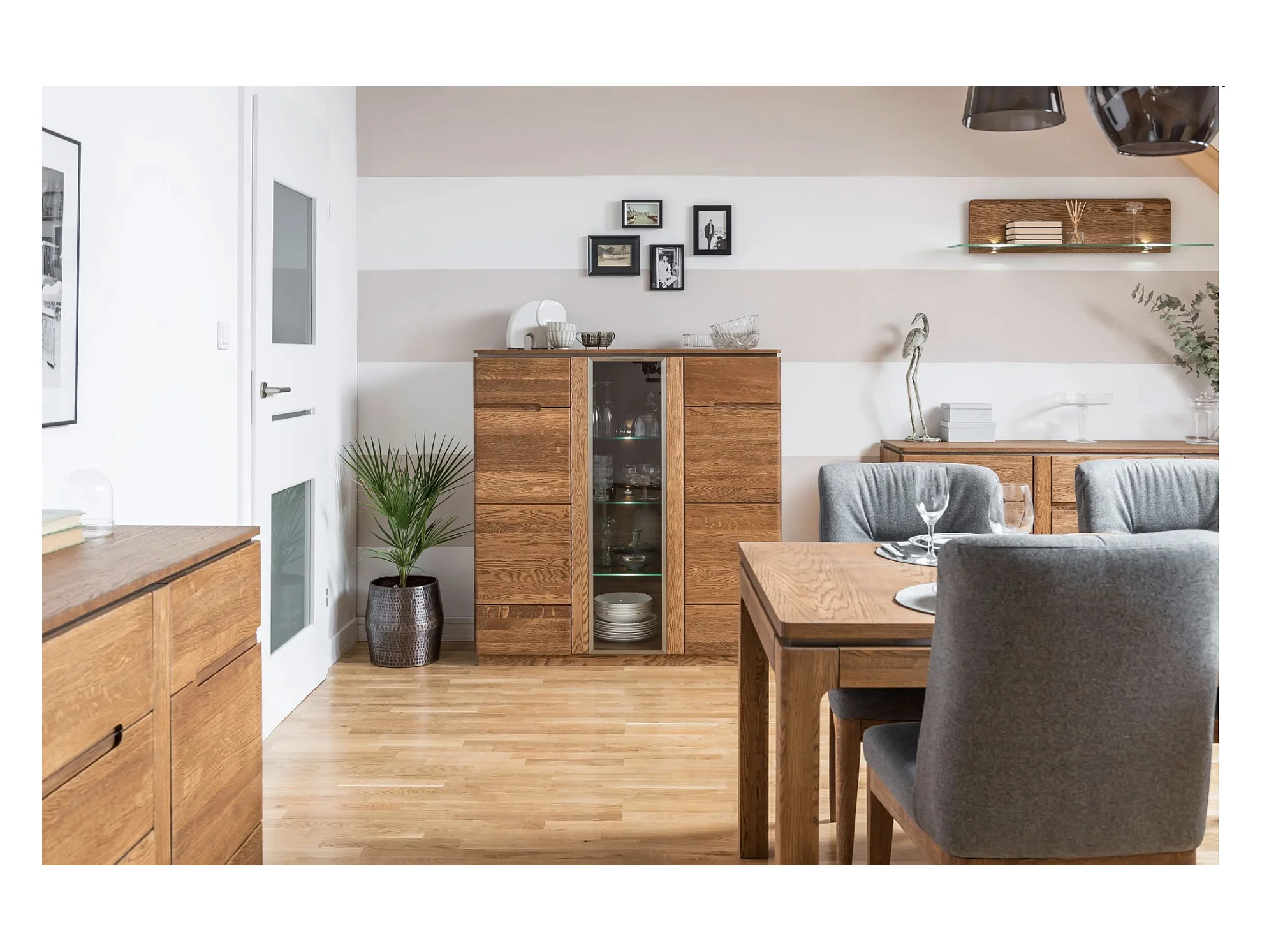 Vitrine 2 portes vitrées en bois chêne clair et bois blanc Lazeto 90cm