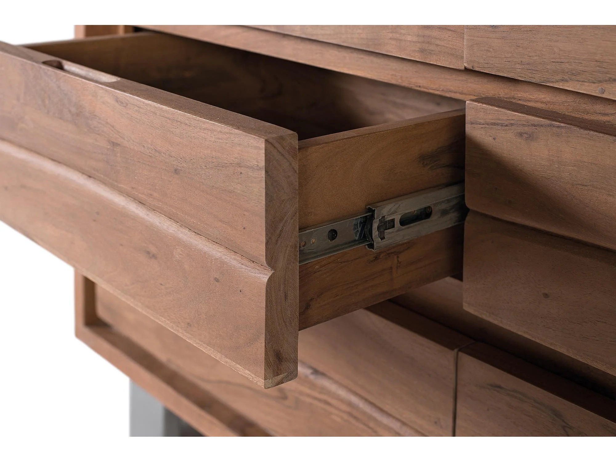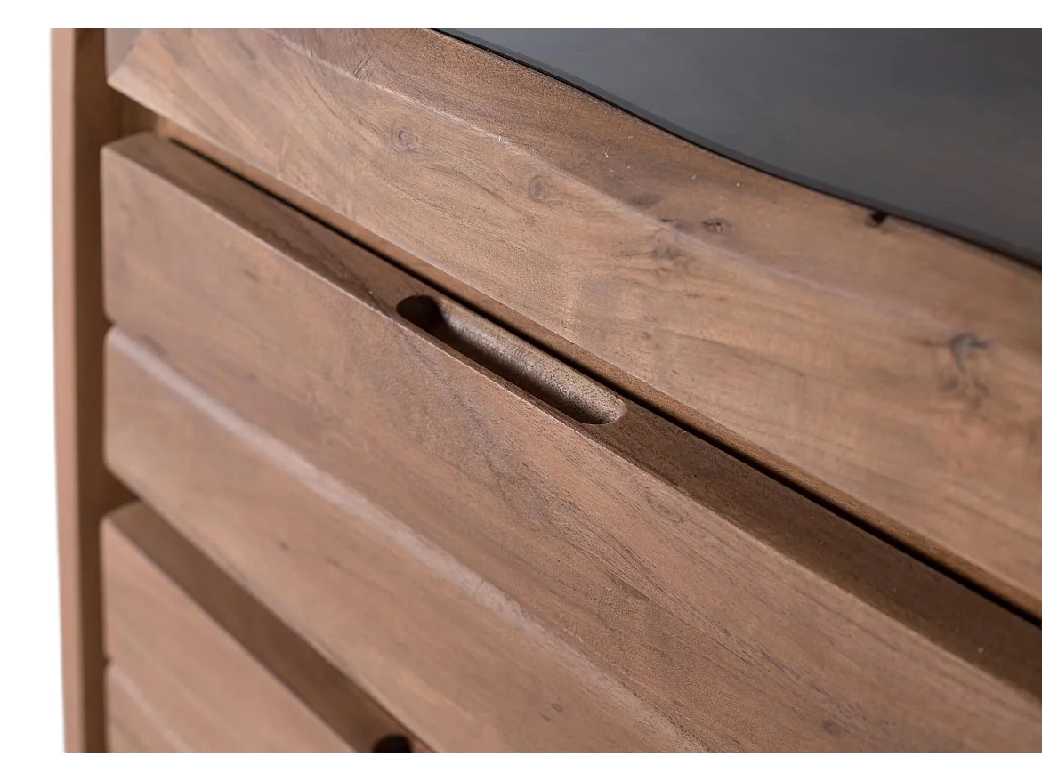 Vitrine en bois massif de Mindy 2 portes coulissantes 5 tiroirs Orka 120cm