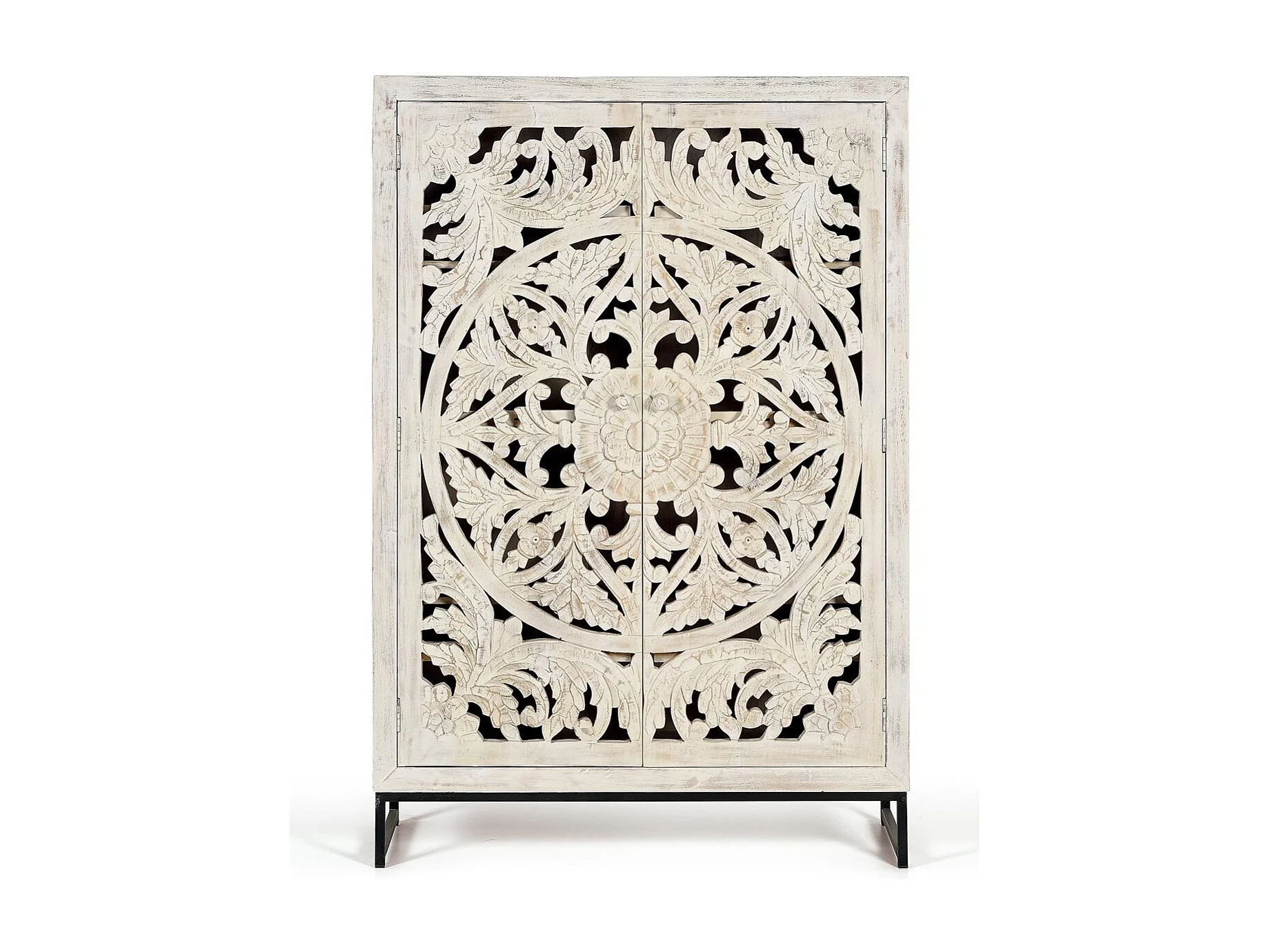 Vitrine en manguier et pieds en métal blanc vieilli