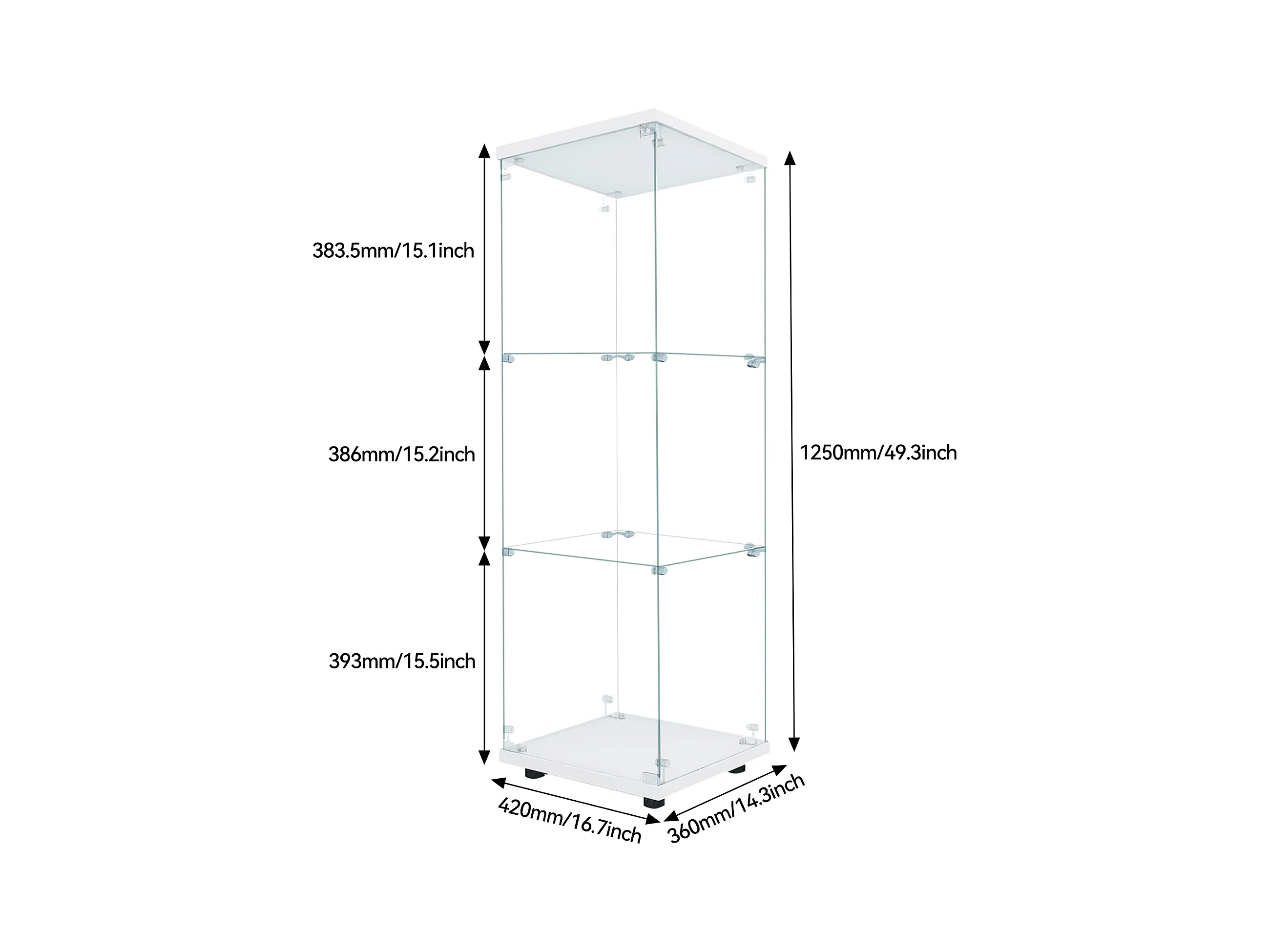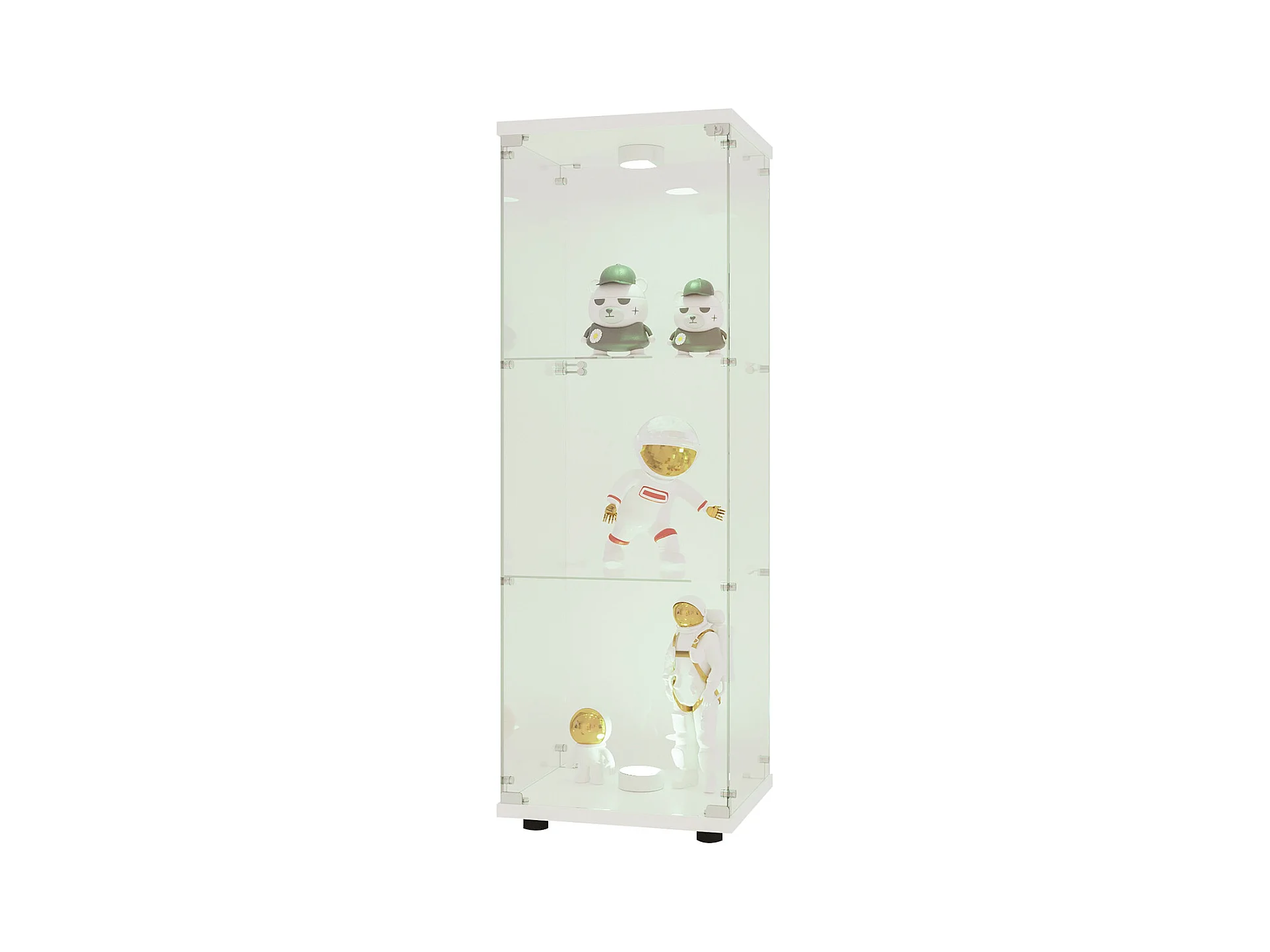 Vitrine en Verre GARHELPER – 3 Étagères, 1 Porte, Verre Trempé, Blanc, 42x36x125 cm