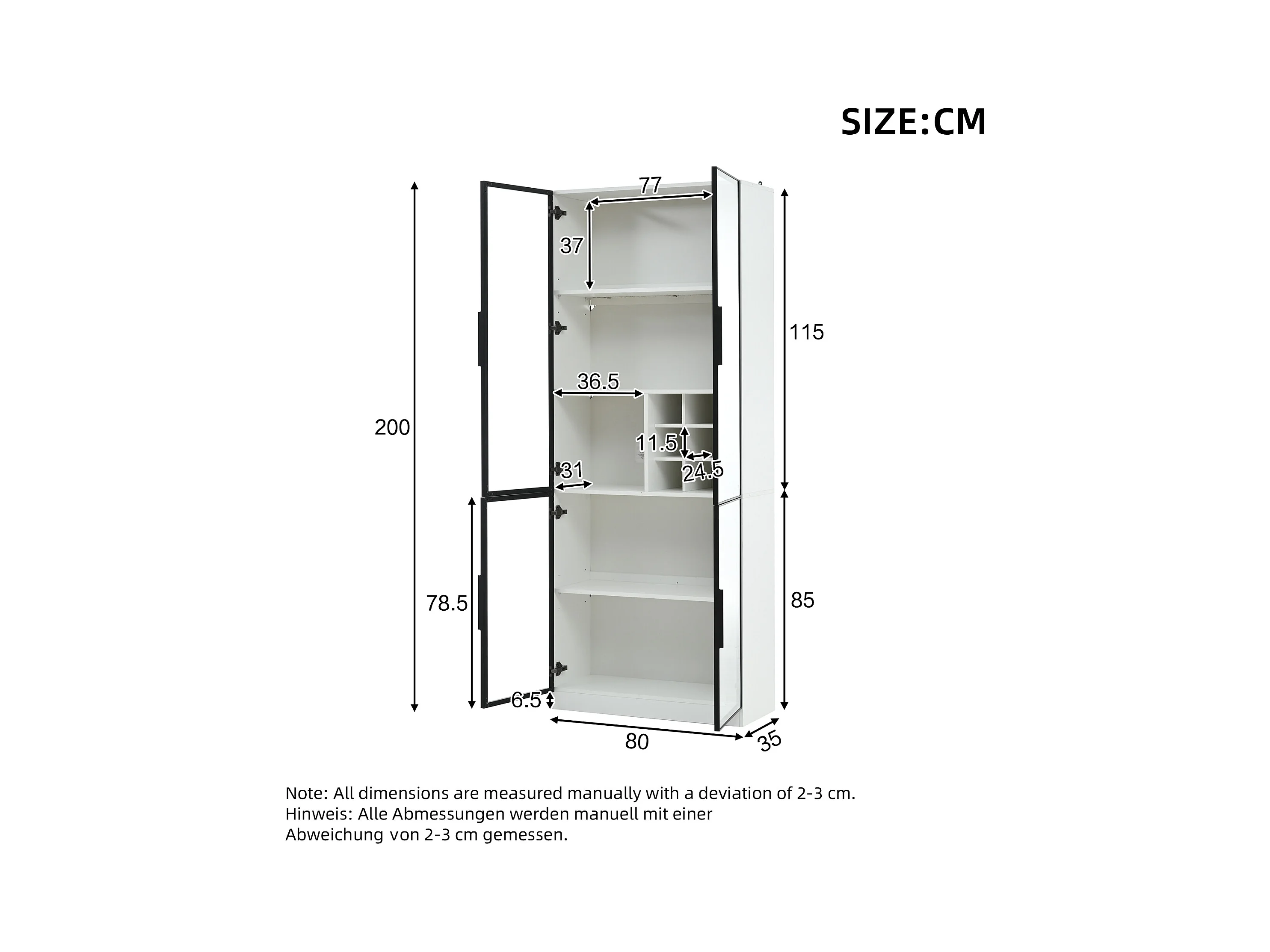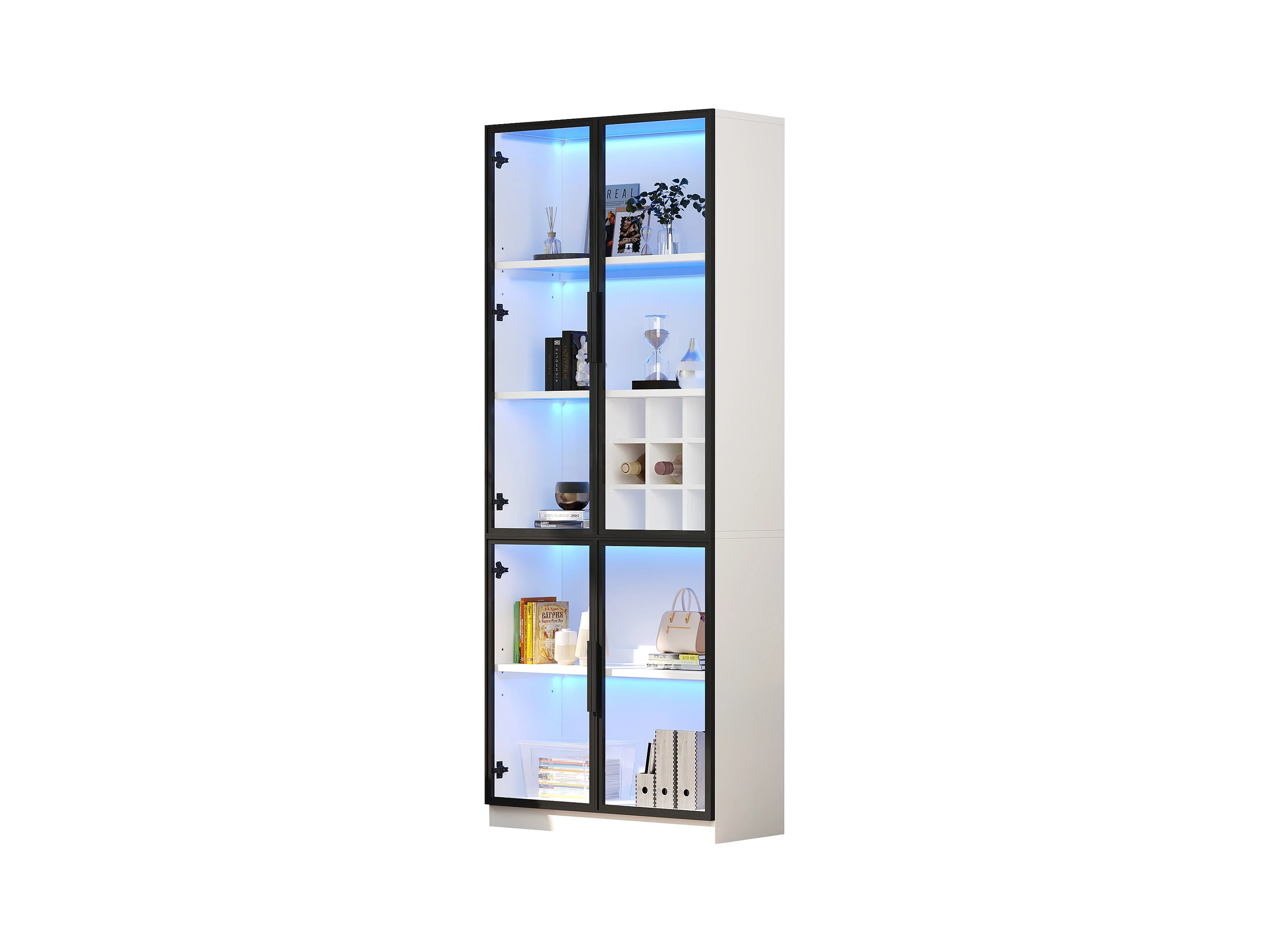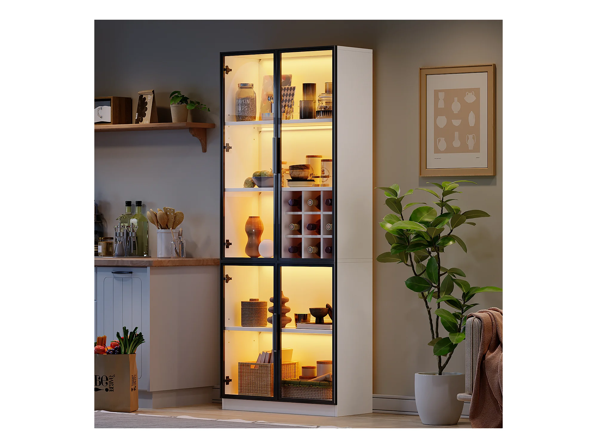 Vitrine en verre - 80 x 35 x 200 cm - avec portes vitrées + Leds - aggloméré - blanc