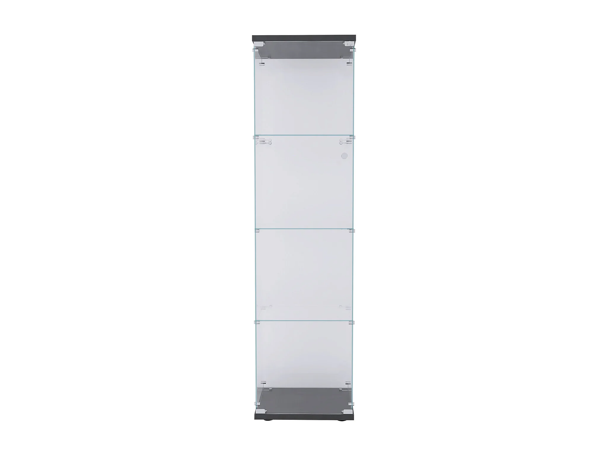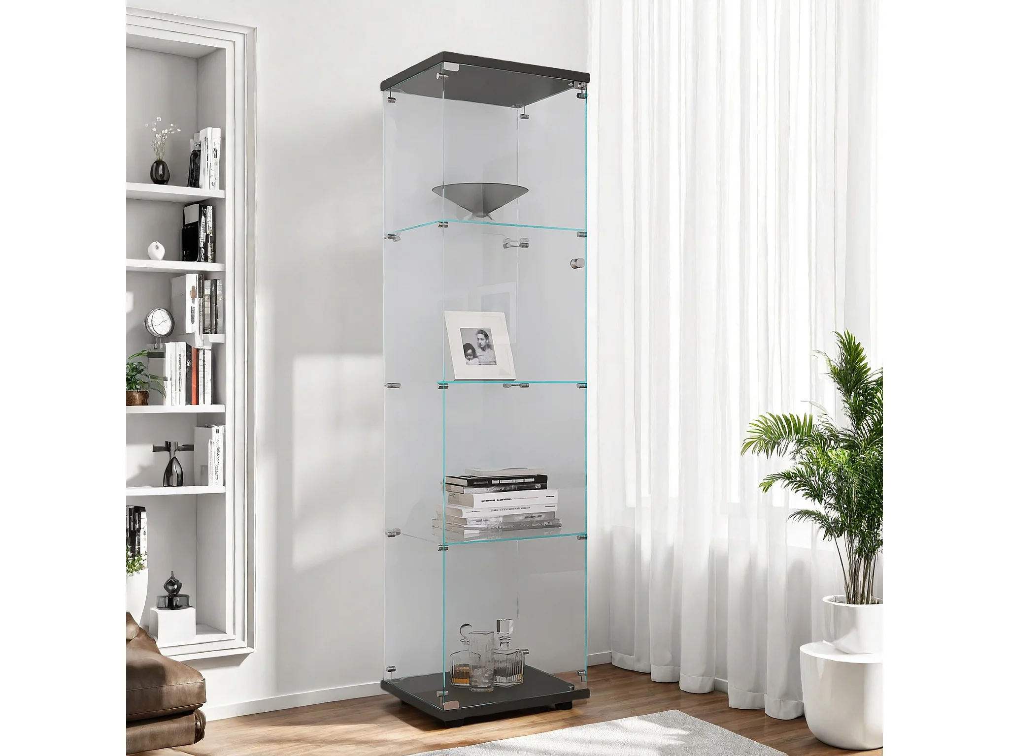 Vitrine en verre à 4 étagères avec porte, bibliothèque sur pied pour salon, chambre à coucher, bureau, verre trempé, noire