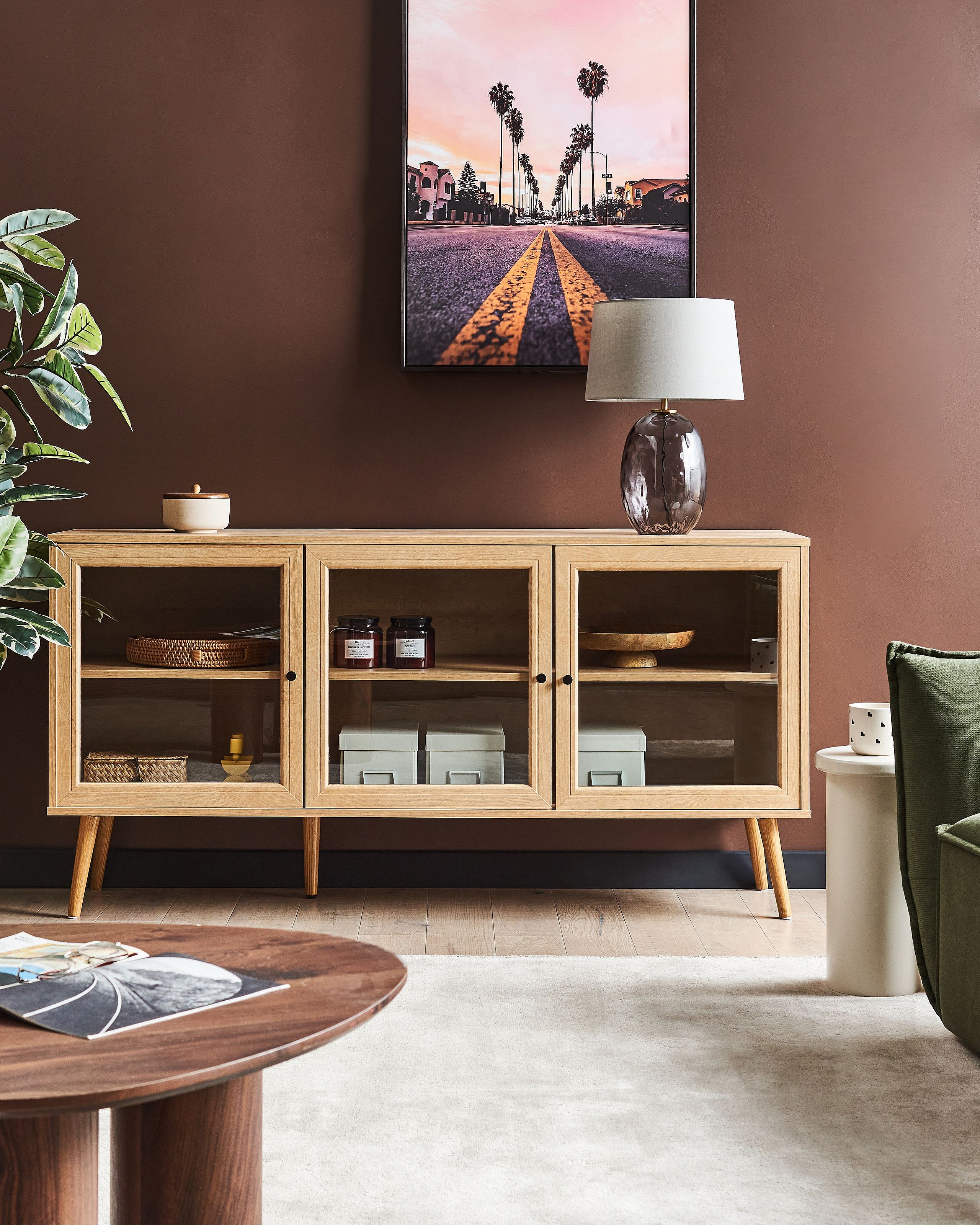 Buffet avec vitrine en verre ALBANY 150 cm Marron clair