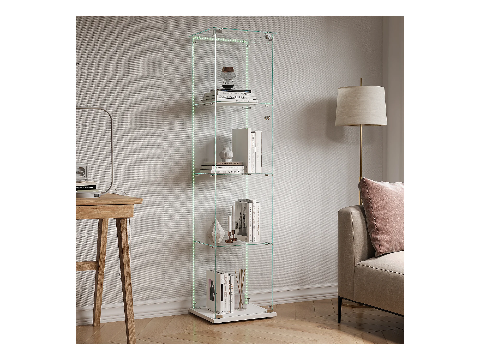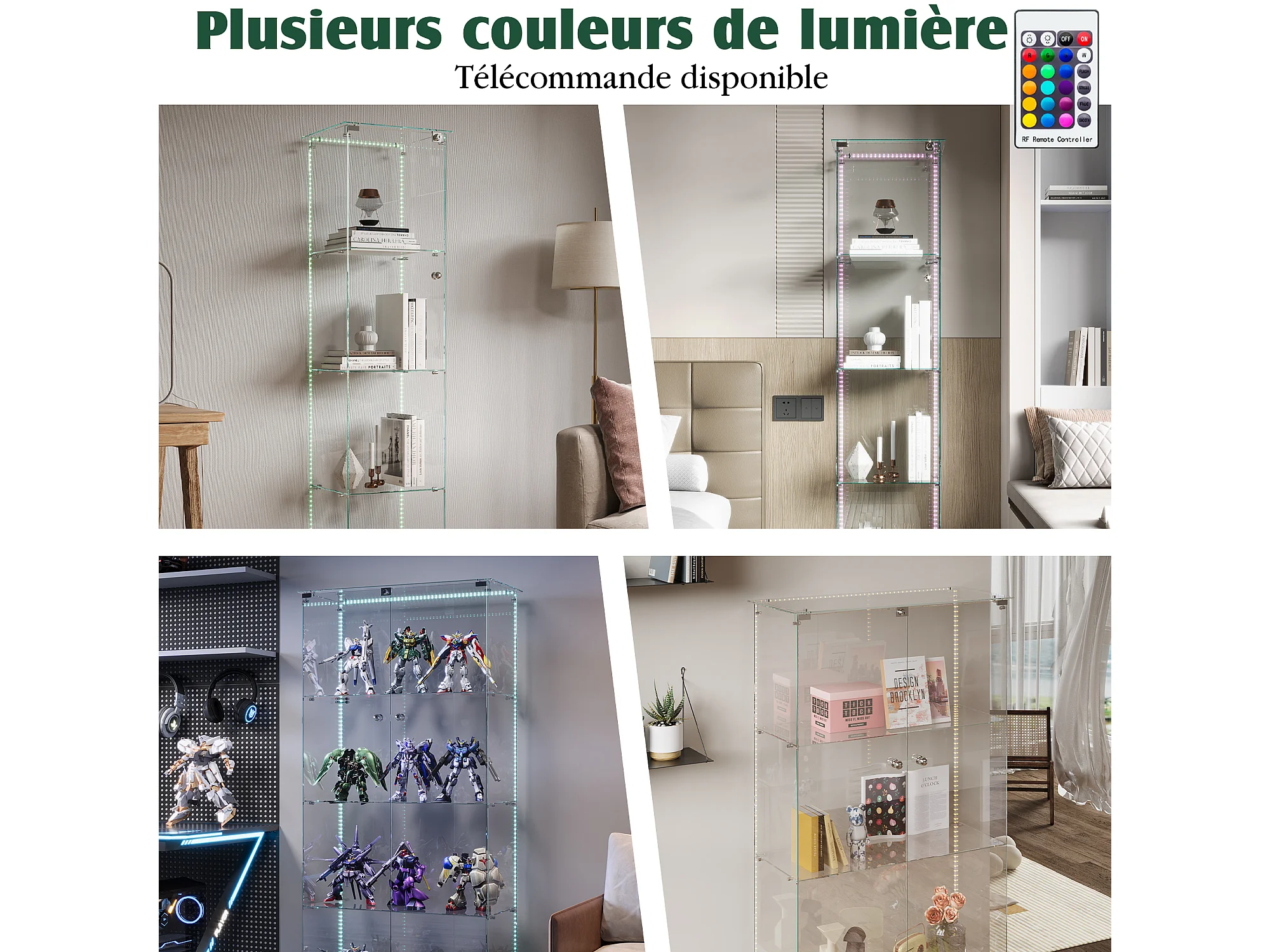 Vitrine en verre avec 5 étagères et portes doubles, vitrine de salon