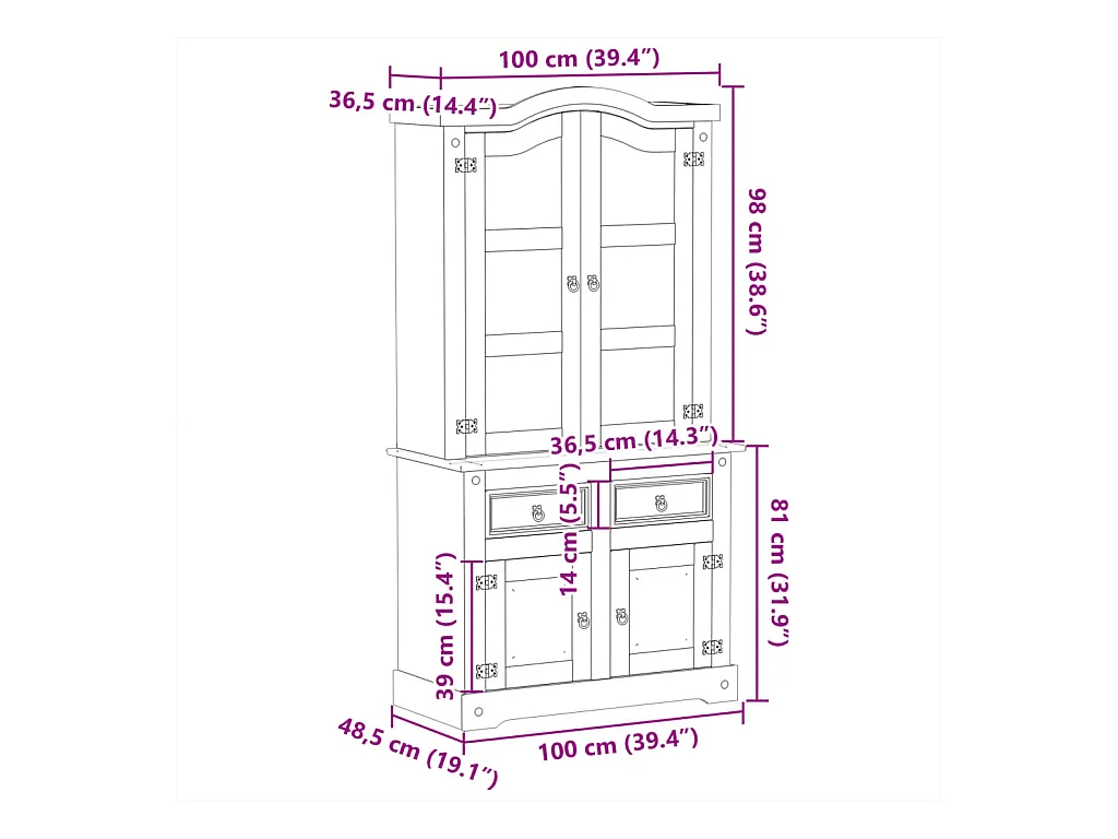 Vitrine en verre Corona 100x48,5x179 cm bois massif de pin