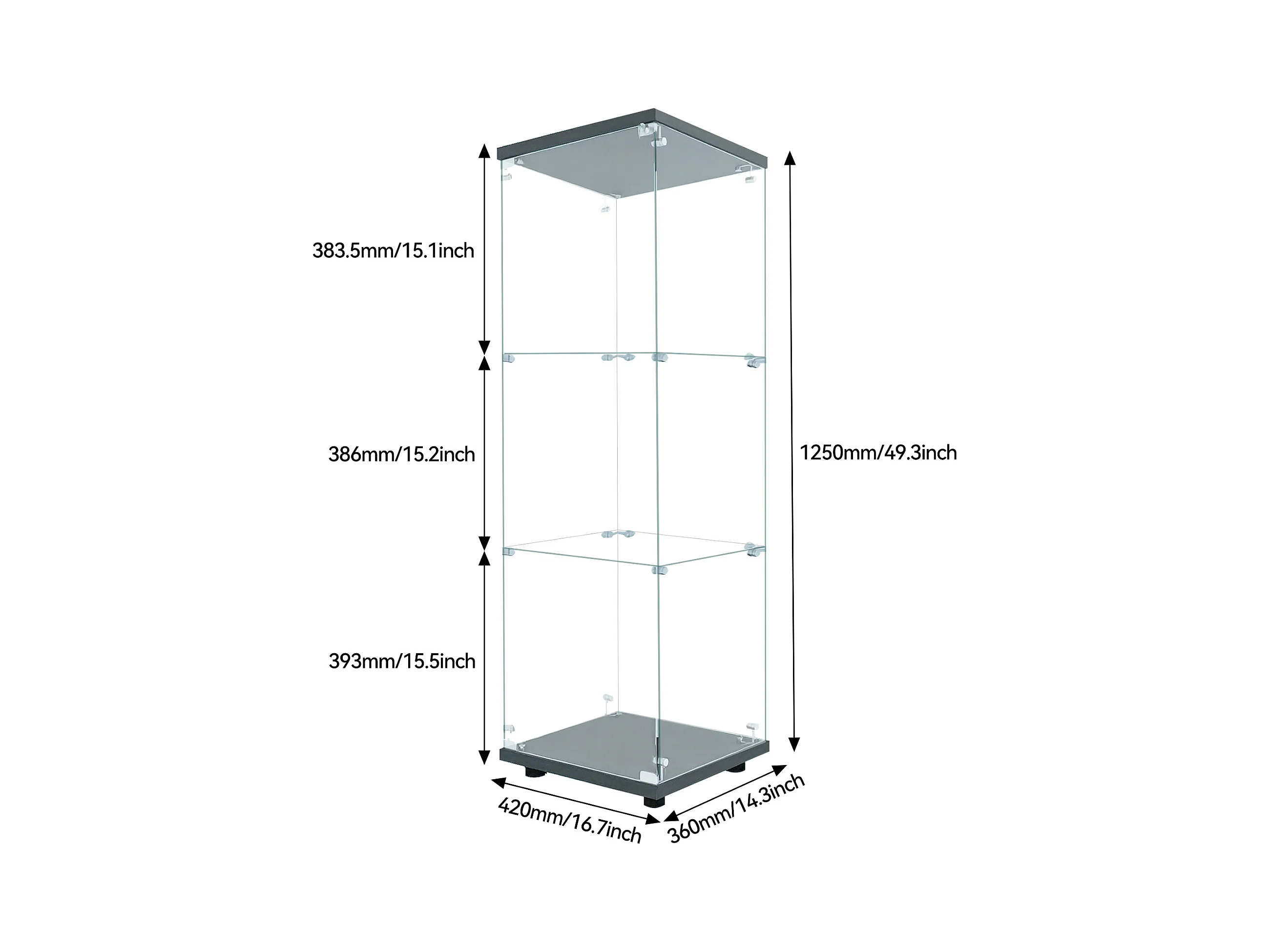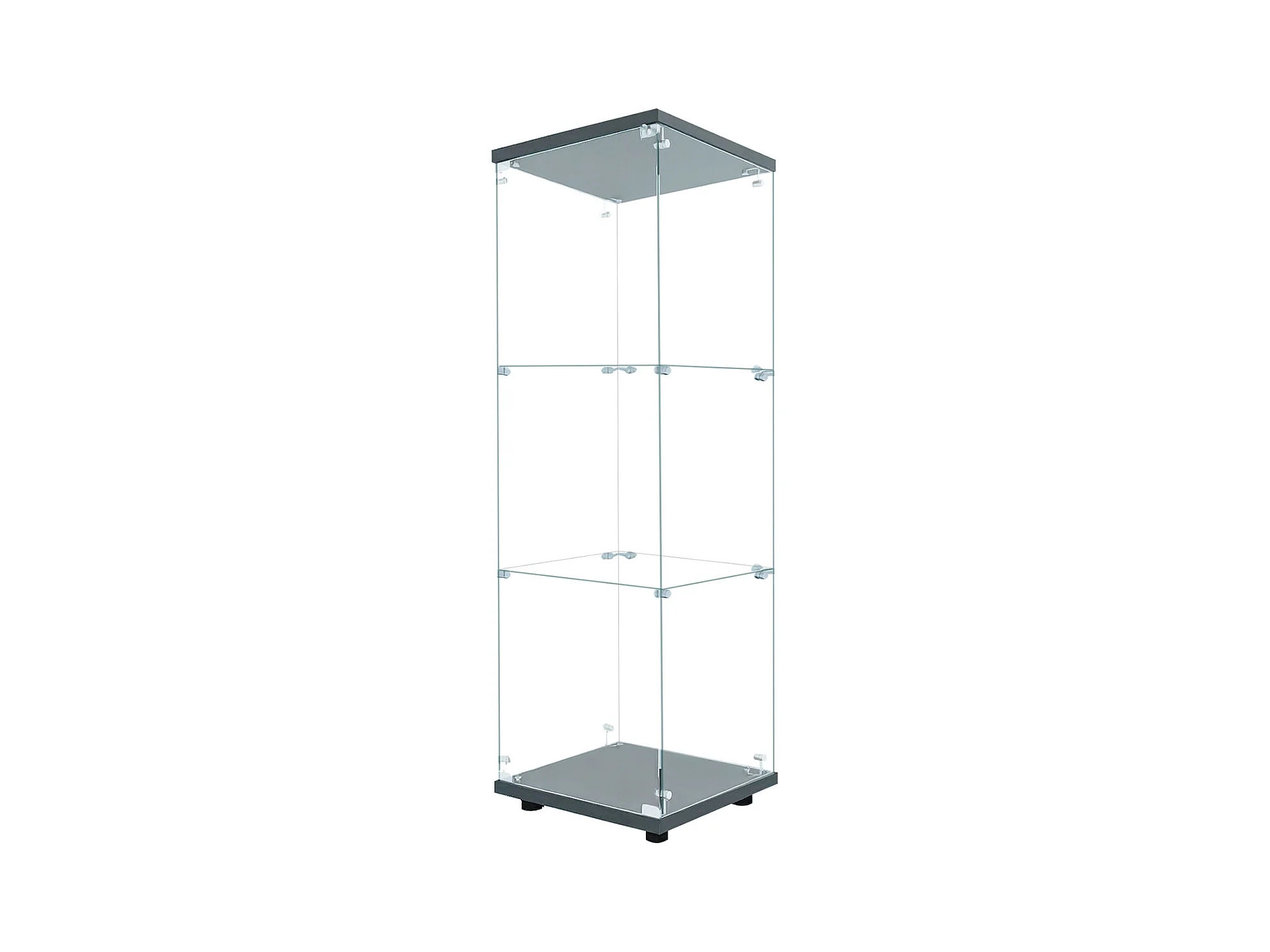 Vitrine en verre sur pied, LED, 2 portes avec serrure, 4 compartiments, pour collections et déco
