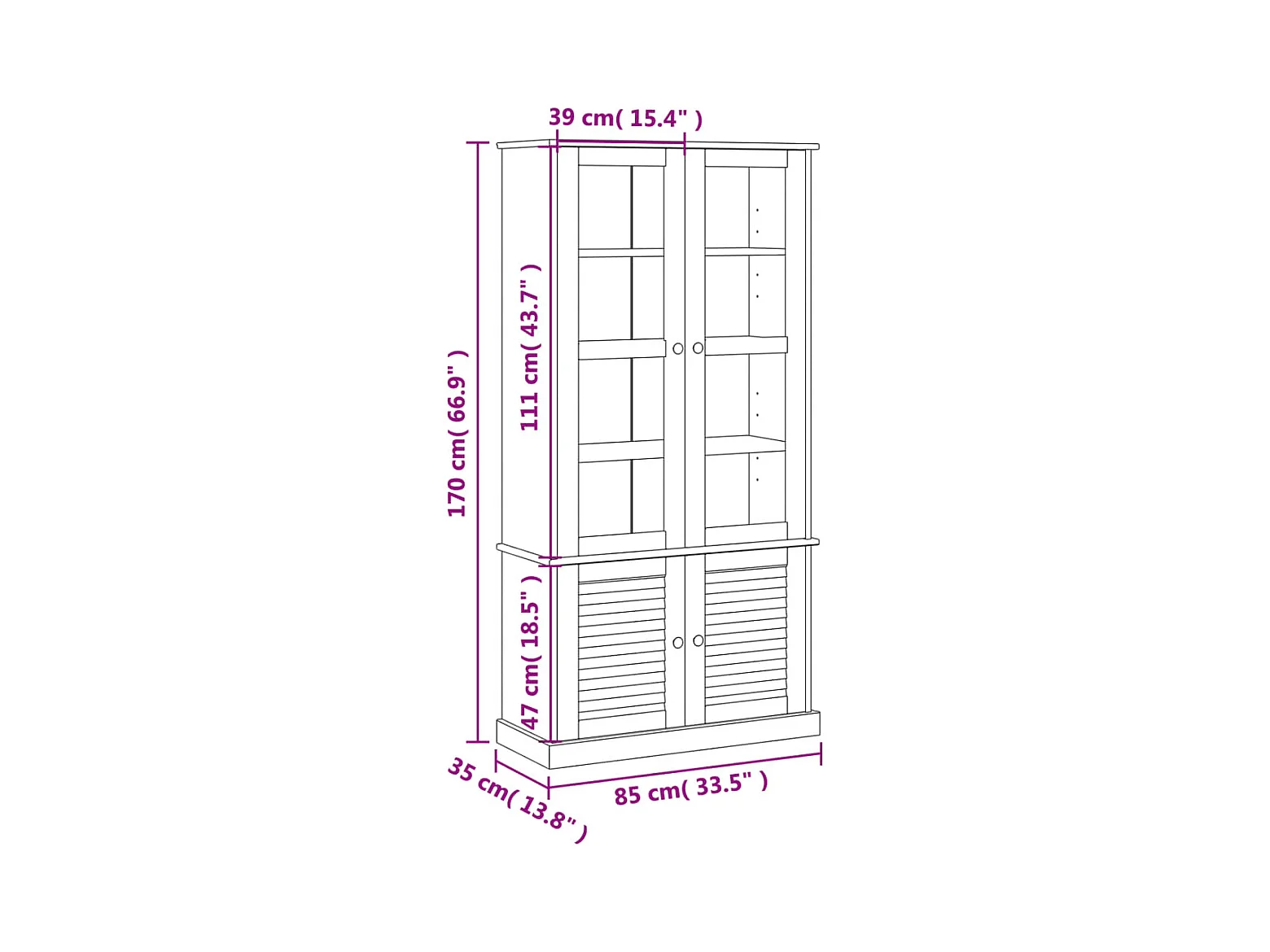 Vitrine en verre VIGO blanc 85x35x170 cm bois massif de pin