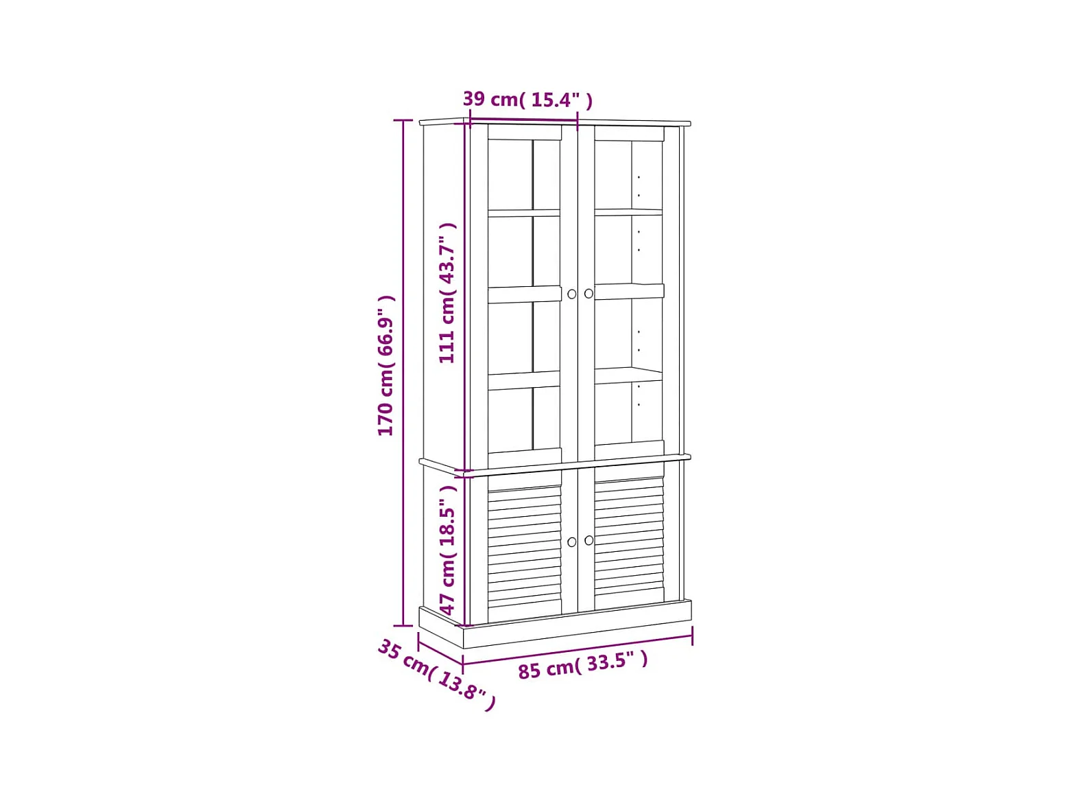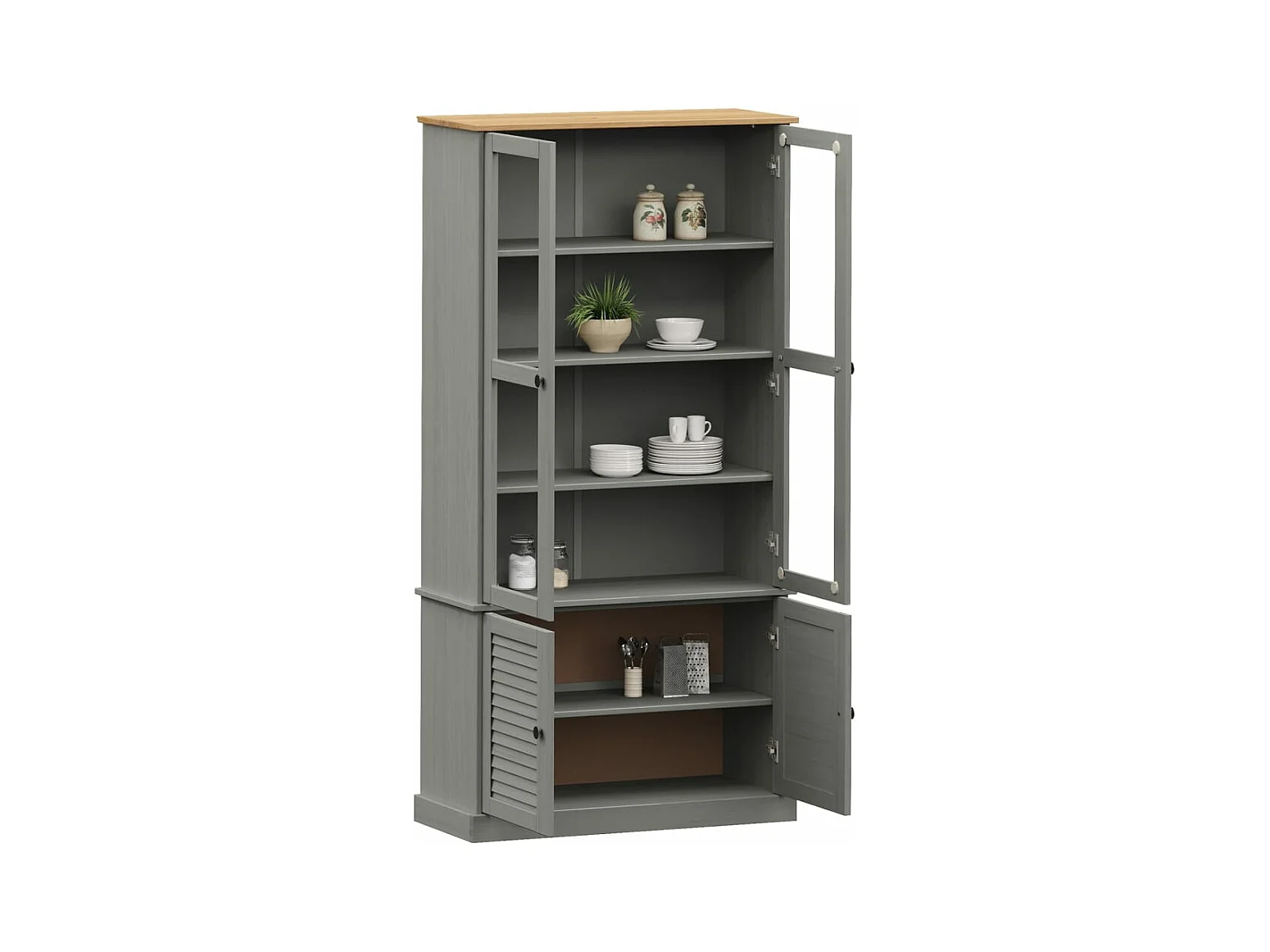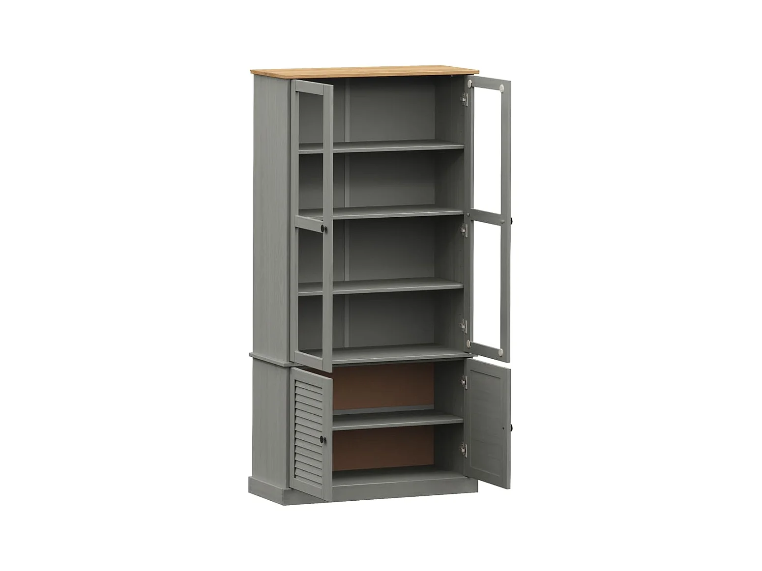 Vitrine en verre VIGO gris 85x35x170 cm bois massif de pin