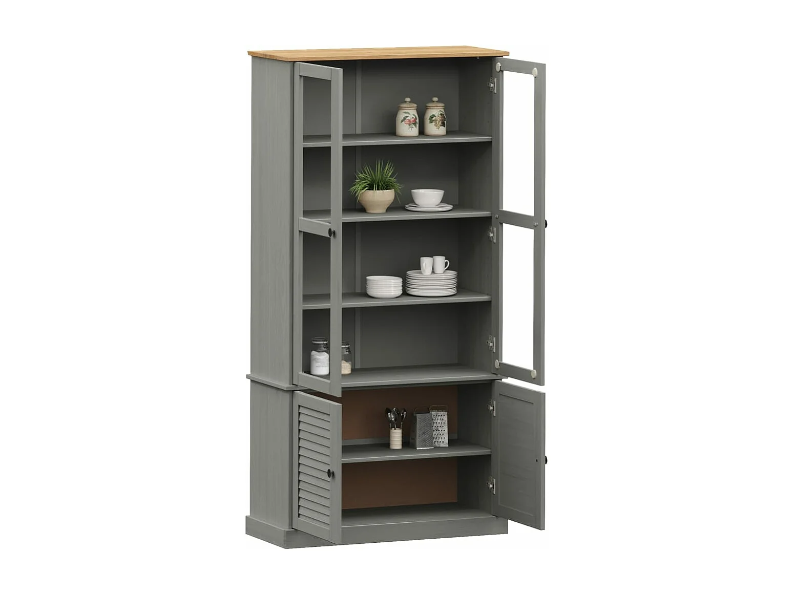 Vitrine en verre VIGO gris 85x35x170 cm bois massif de pin