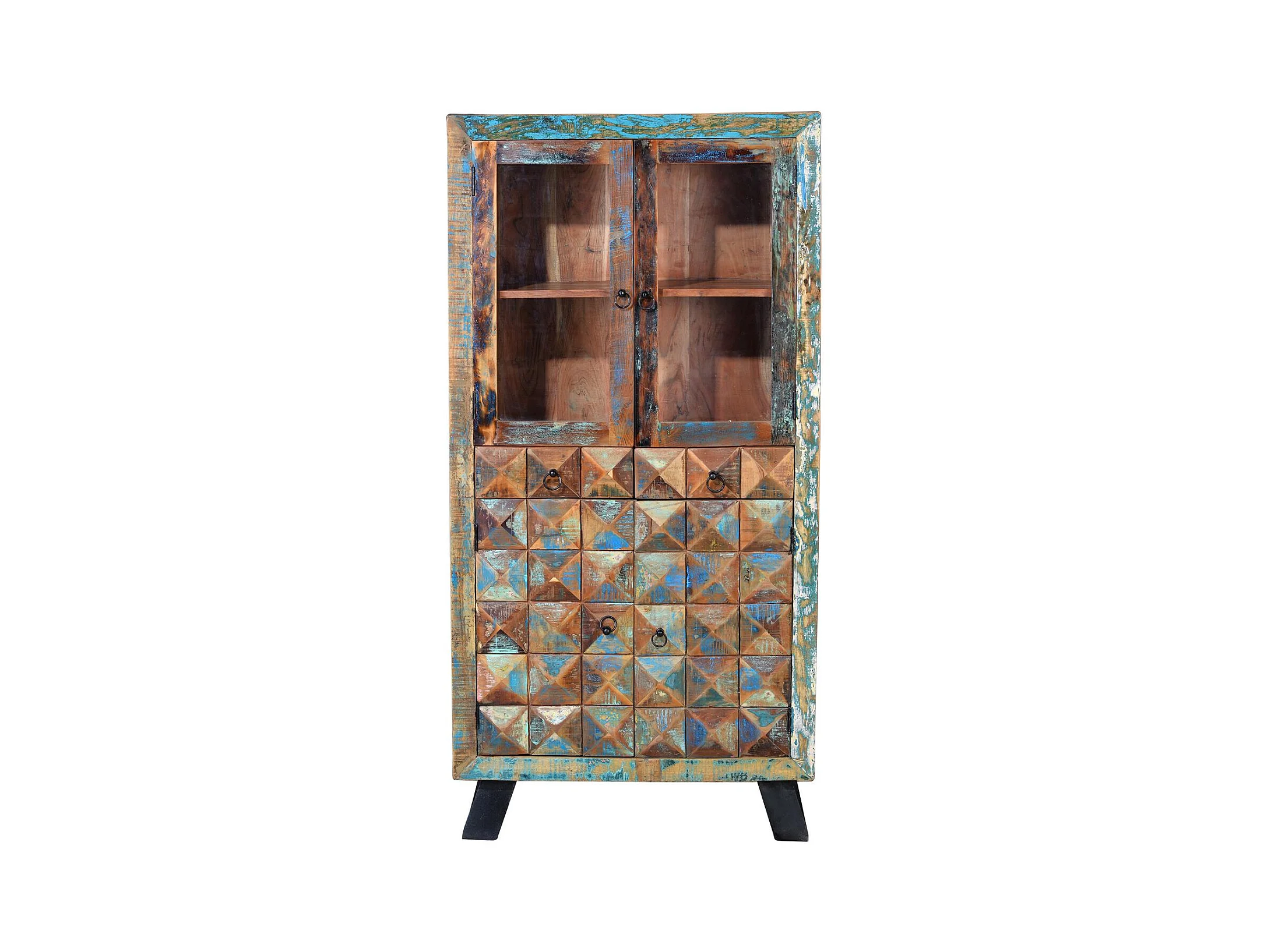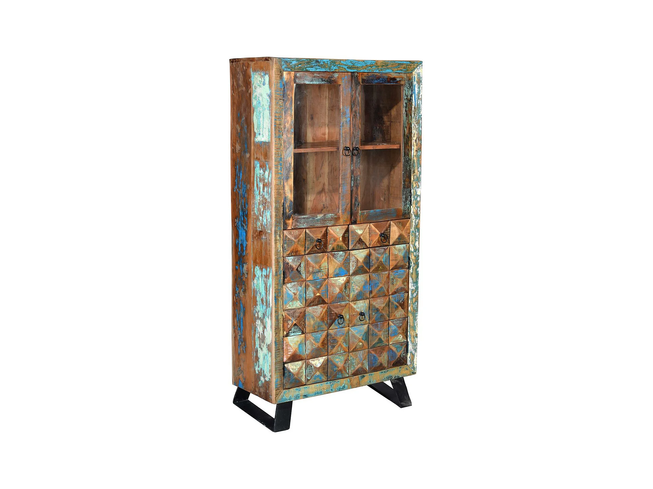Vitrine en chêne massif 2 portes 3 tiroirs Nordo 130cm