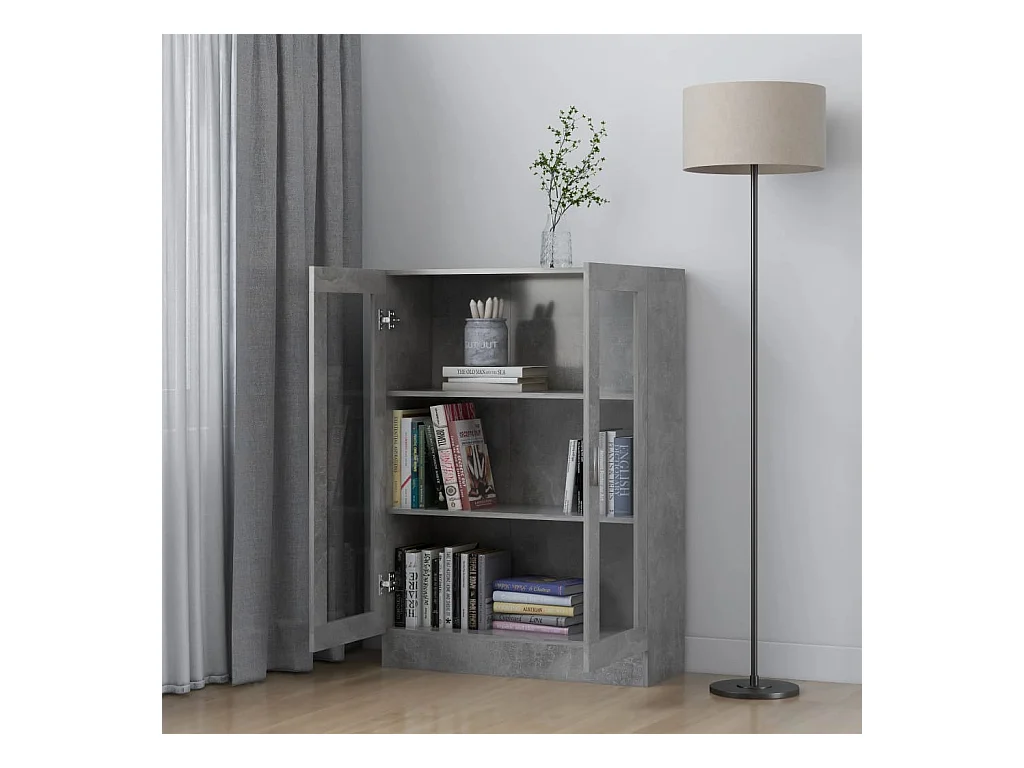 Vitrine Gris béton 82,5x30,5x115 cm Aggloméré OFR63161 BonneVie Meuble
