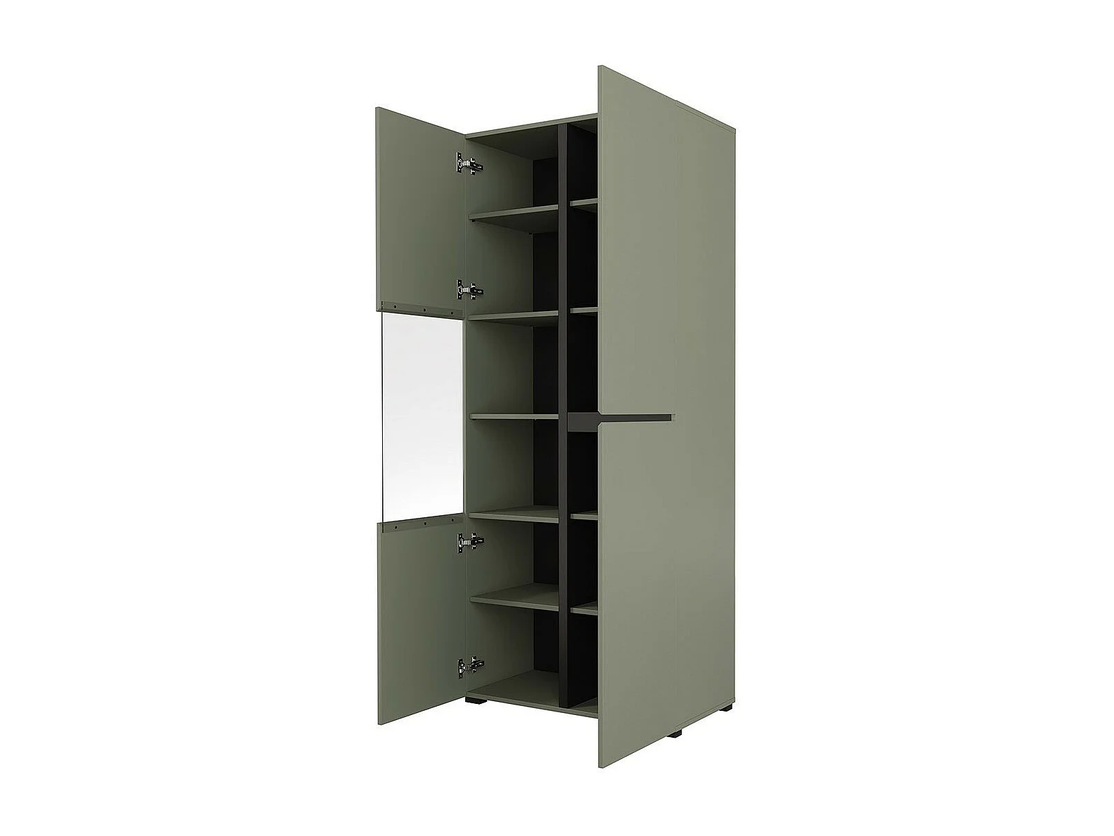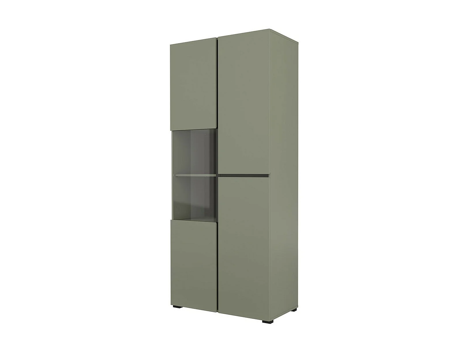 Vitrine haute 2 portes collection HAVANA avec LED intégrée. Coloris sauge et noir.