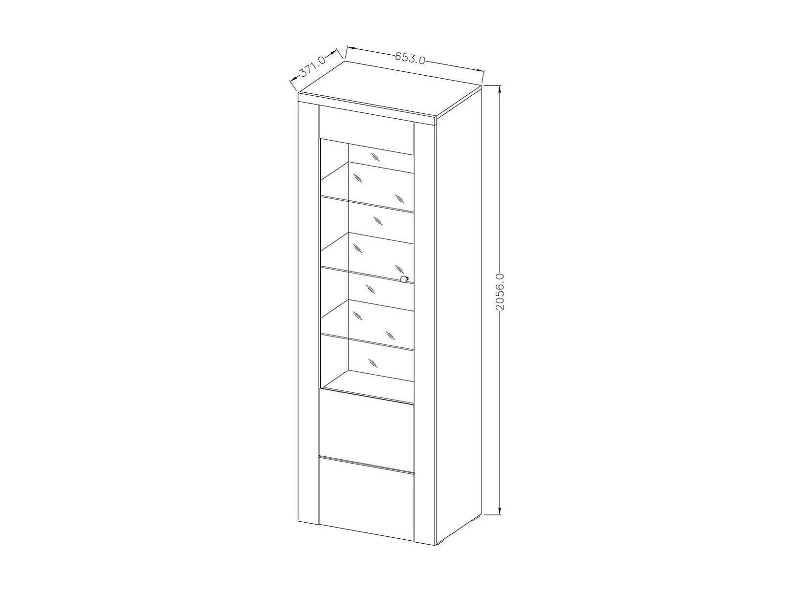 Vitrine haute ZANTE avec 1 porte vitrée et 2 tiroirs - Blanc brillant - 50 x 194 x 48 cm