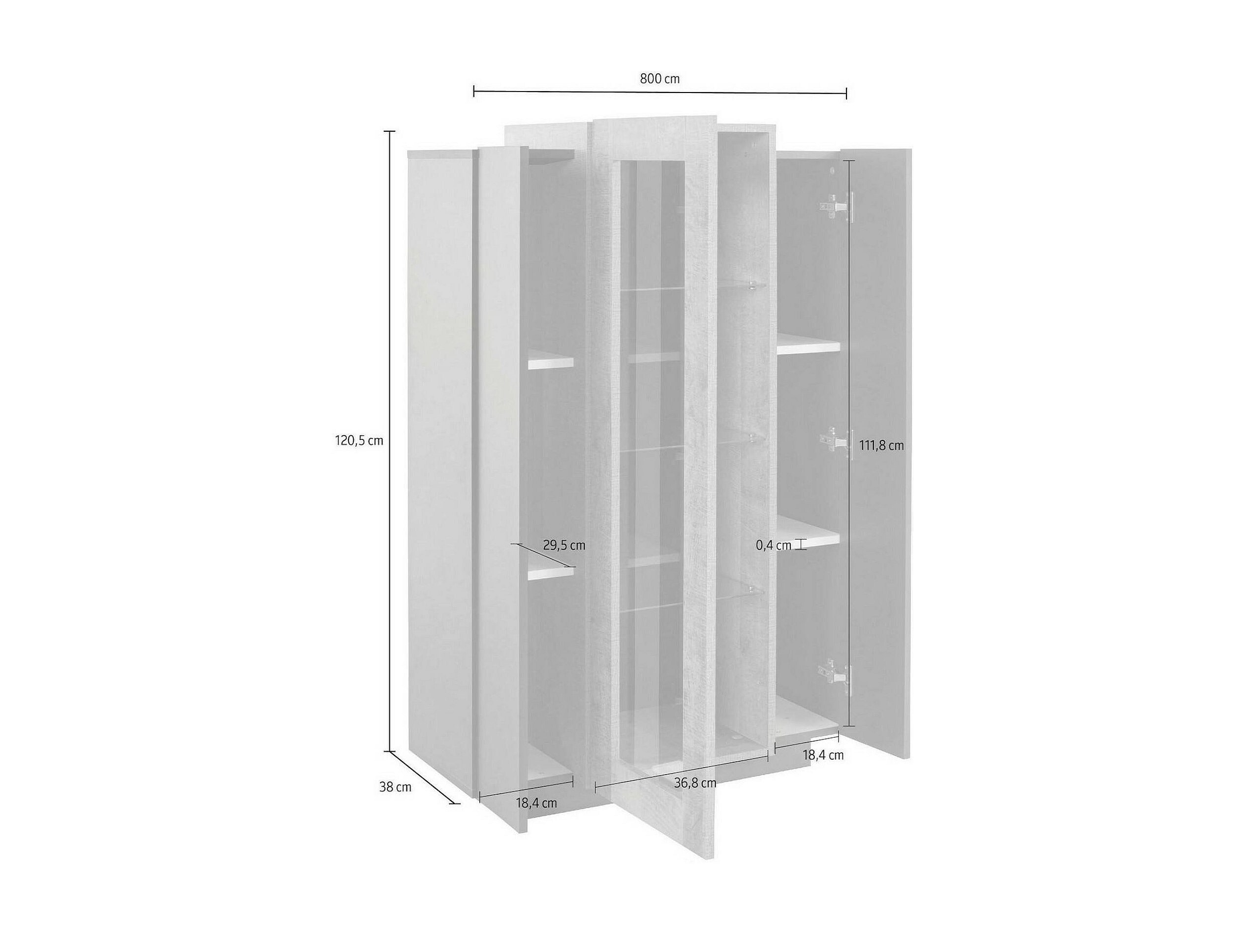 Vitrine Kevin, Buffet à trois portes, Meuble de salon polyvalent, 100% Made in Italy, 80x38h121 cm, Anthracite et Érable