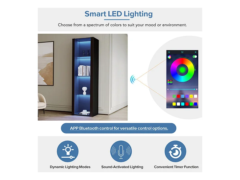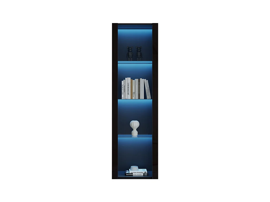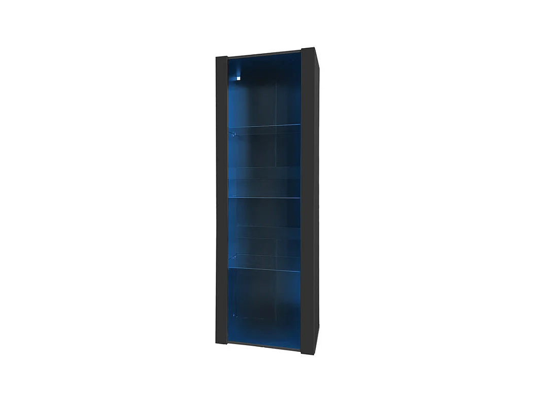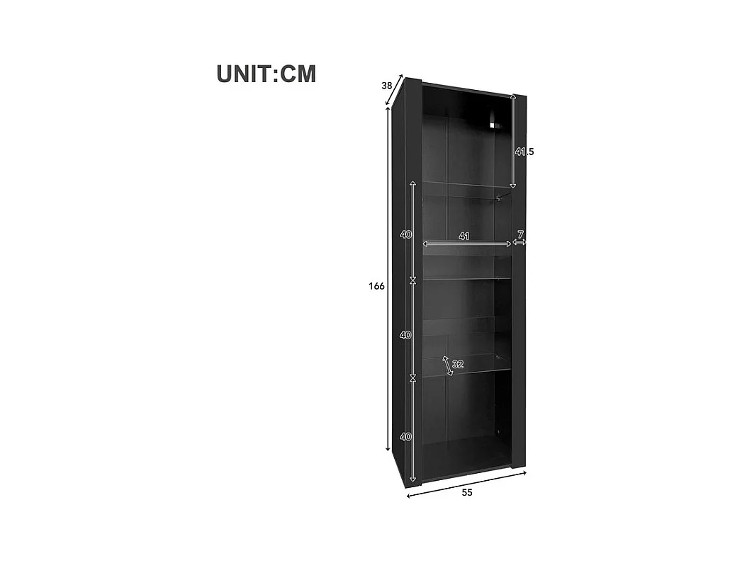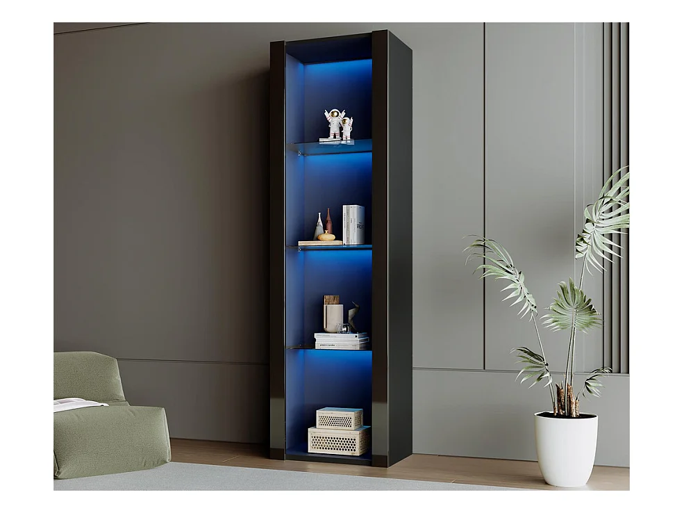 Vitrine L 166cm avec LED - 3 étagères en verre - Noir
