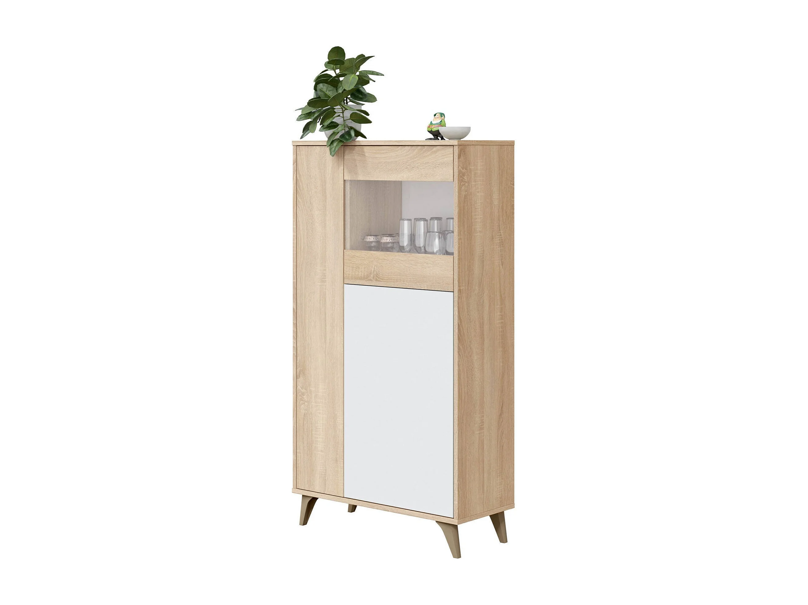 Vitrine Atlanta, Vitrine moderne avec 3 portes, Buffet pour salon ou salon, Buffet haut avec étagères, 77x33h142 cm, Chêne et Blanc
