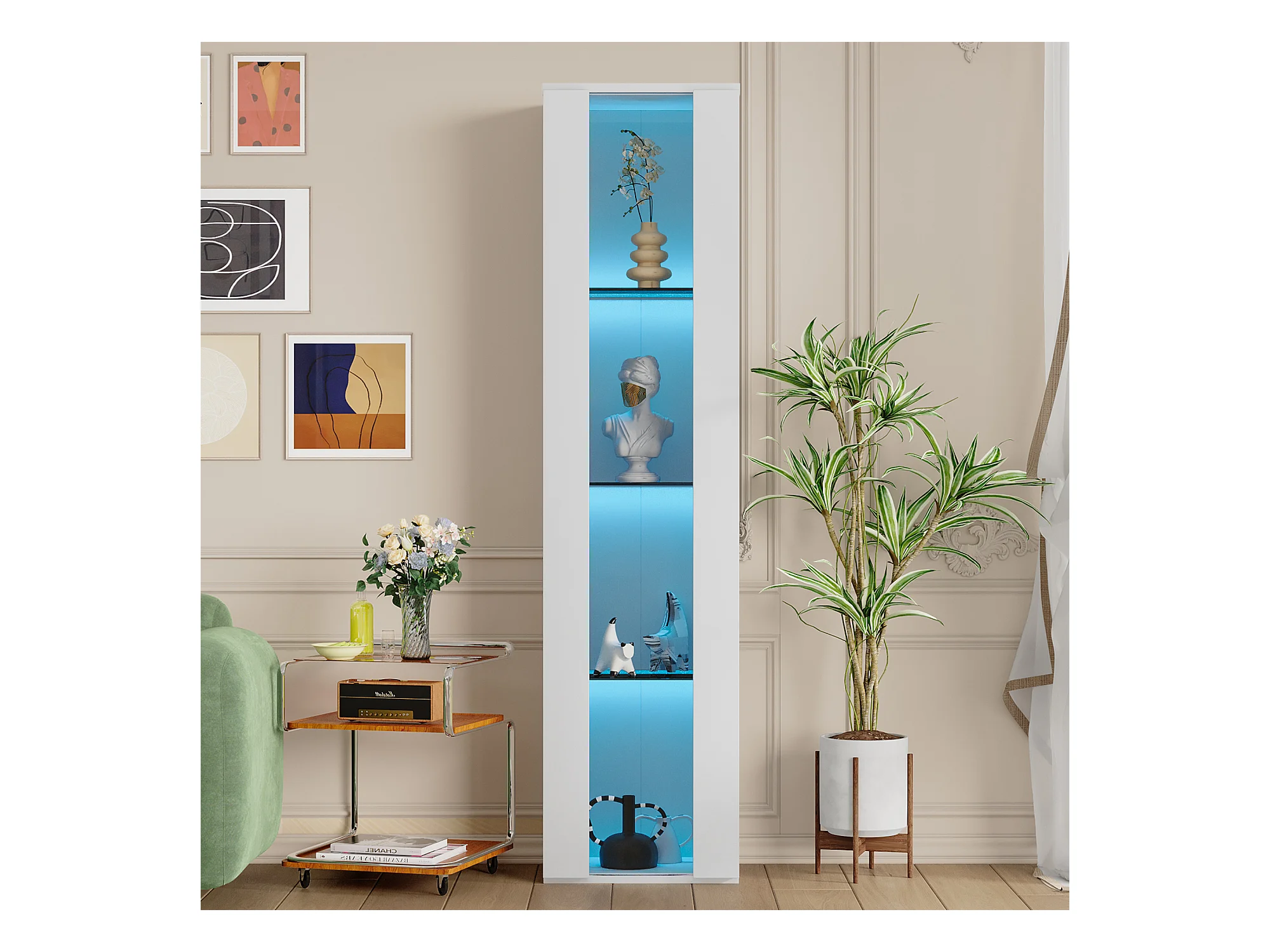 Vitrine multifonctionnelle avec éclairage LED multicolore, panneau acrylique, design simple, blanc (40x29x170 cm)