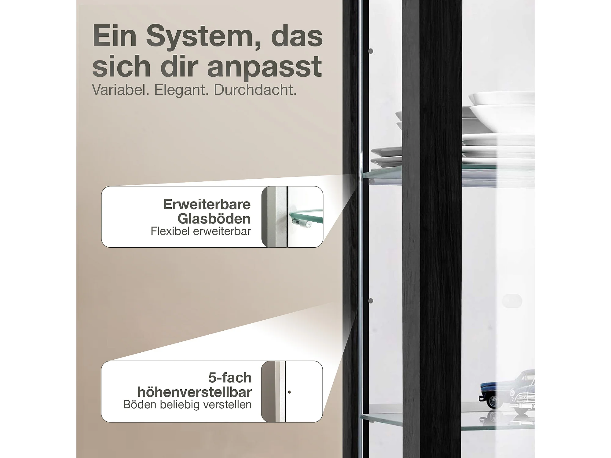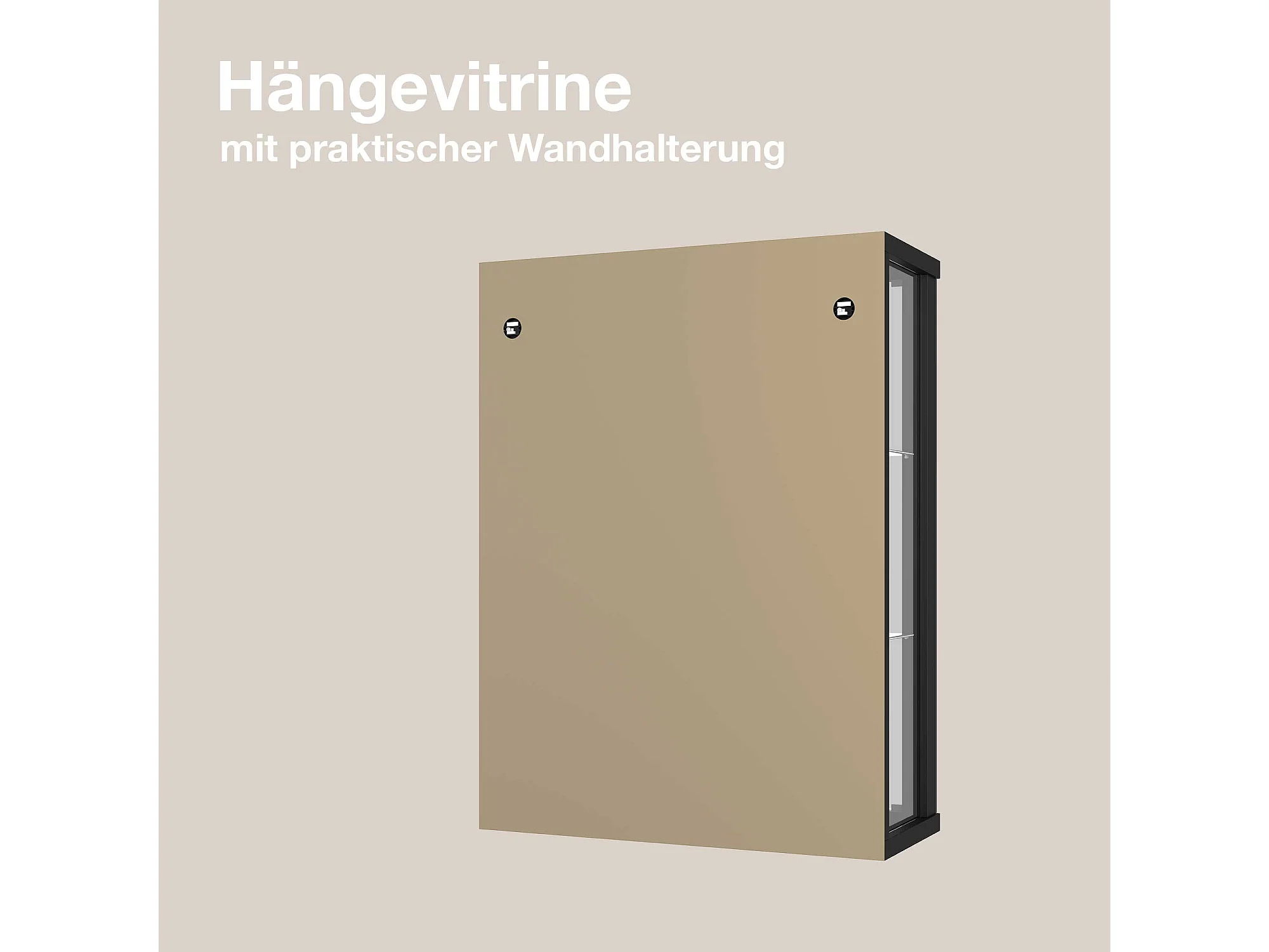 Vitrine murale avec 2 portes, 2 étagères en verre réglables en hauteur & miroir - Avec éclairage LED - 80x60x25 cm - Noir