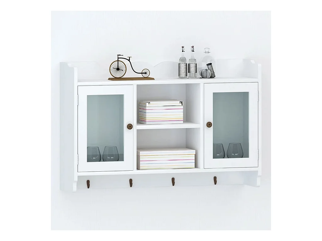 Armoire murale avec étagère de Livre / DVD / Verre en MDF Blanc OFR85300 BonneVie Meuble
