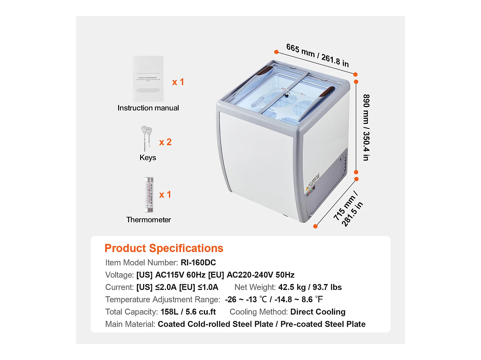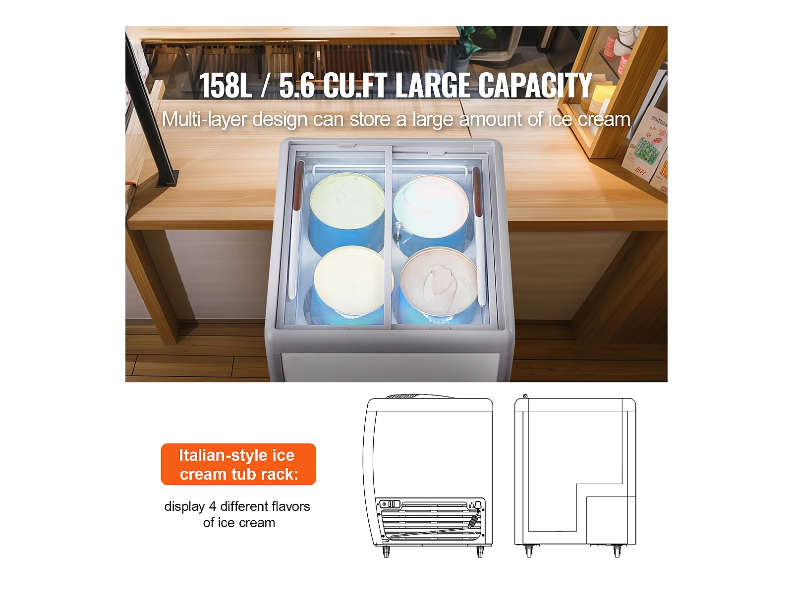 Vitrine Réfrigérée à Crème Glacée SucceBuy Vitrine à Glaces Gelato Commerciale 158L