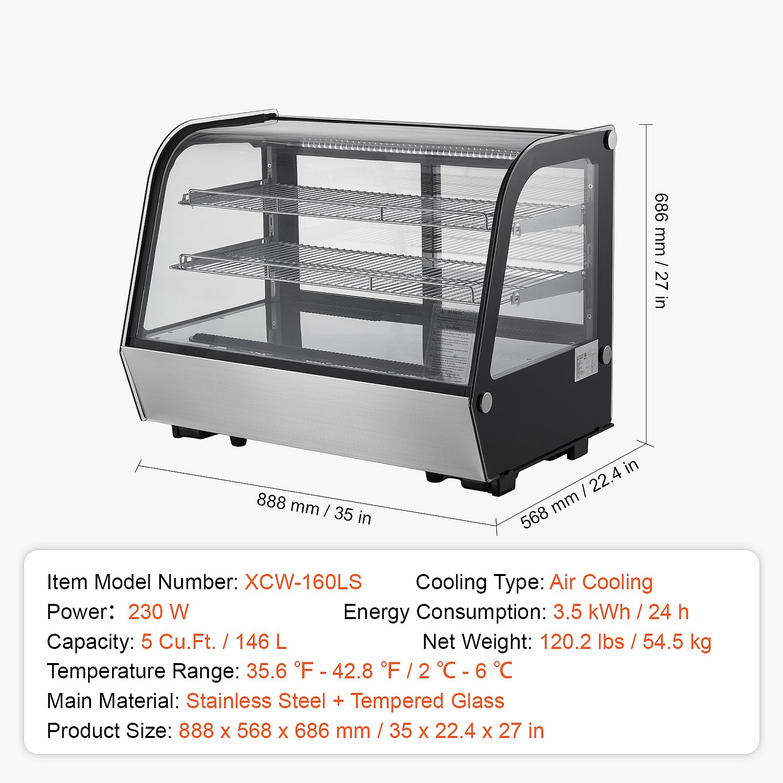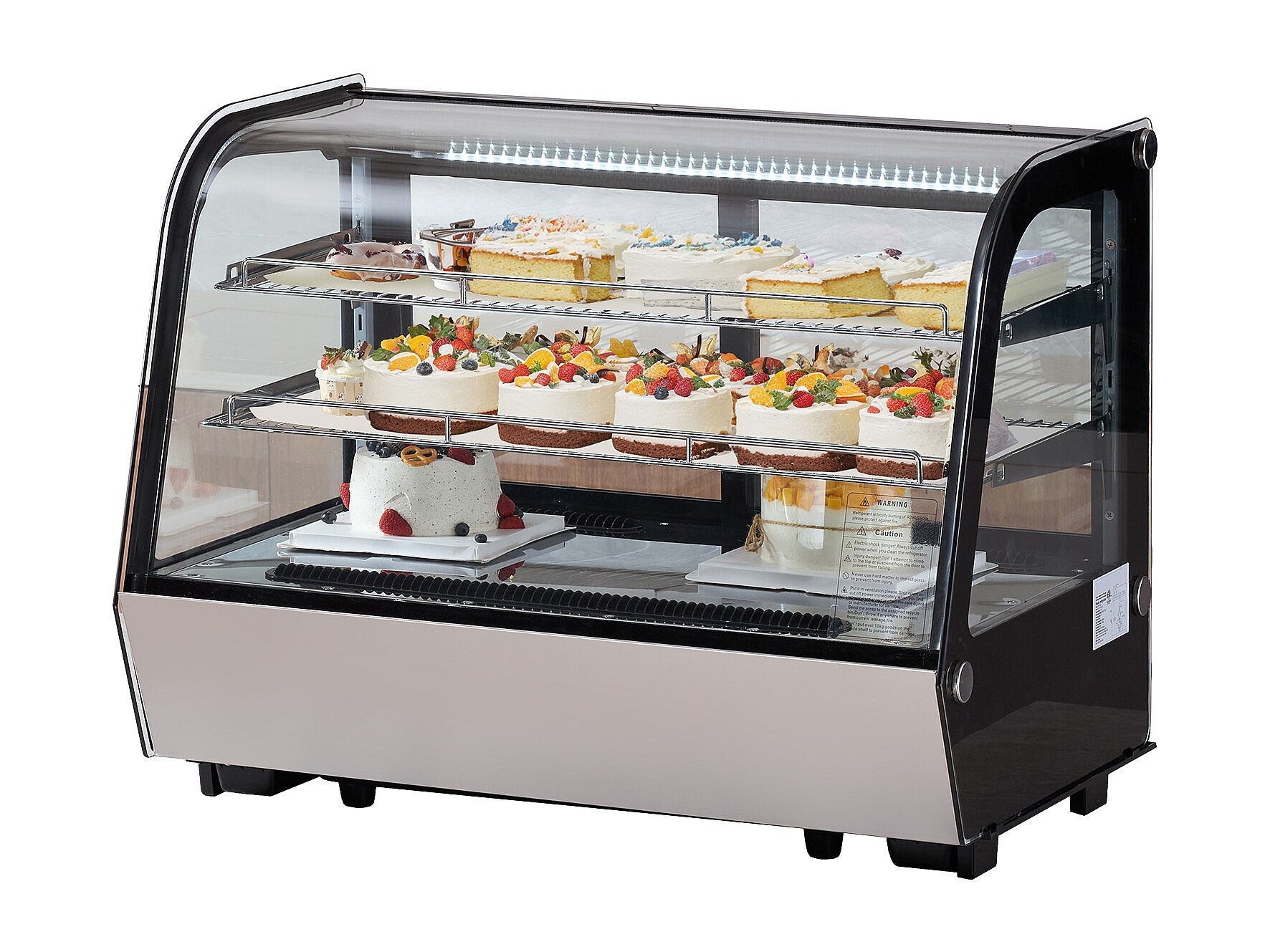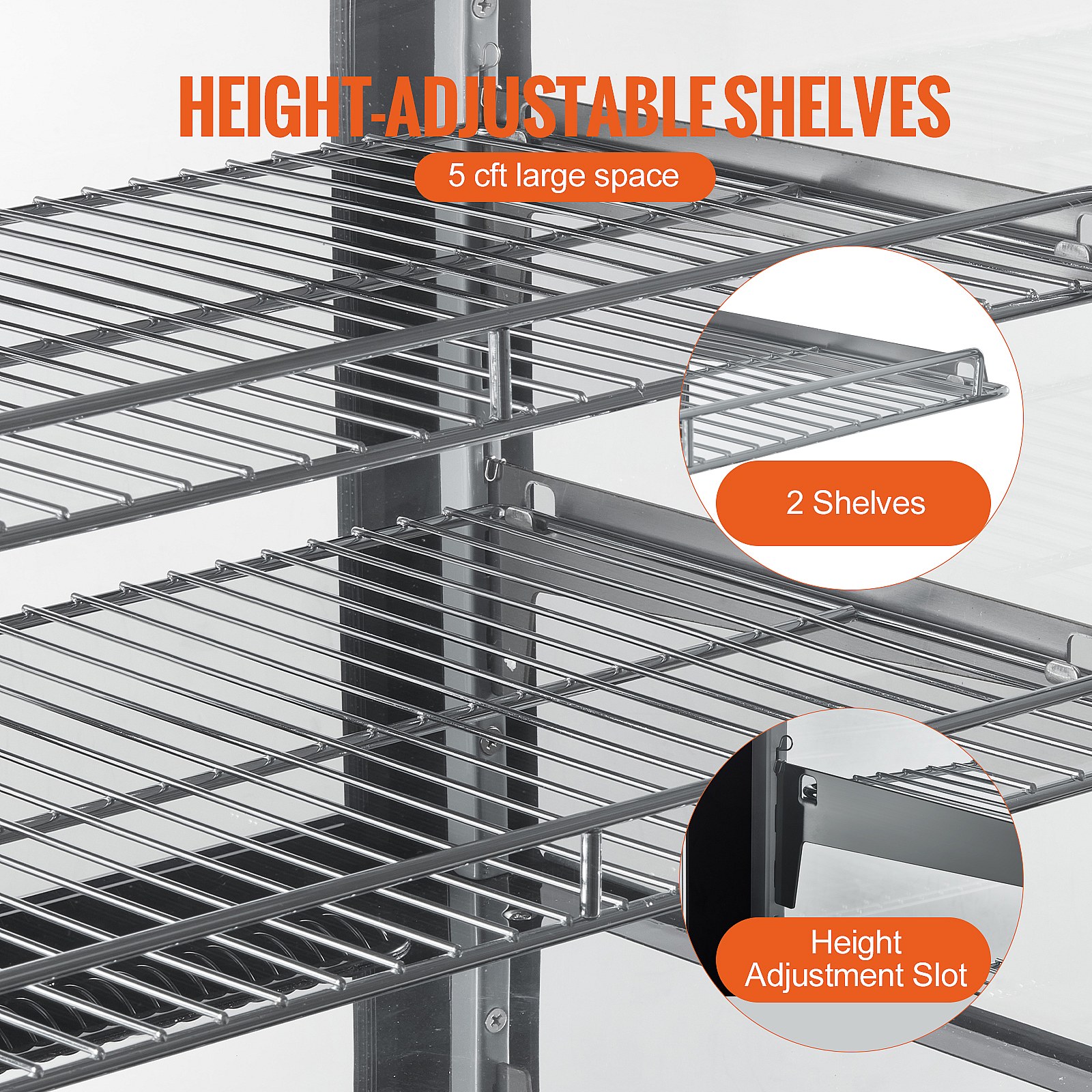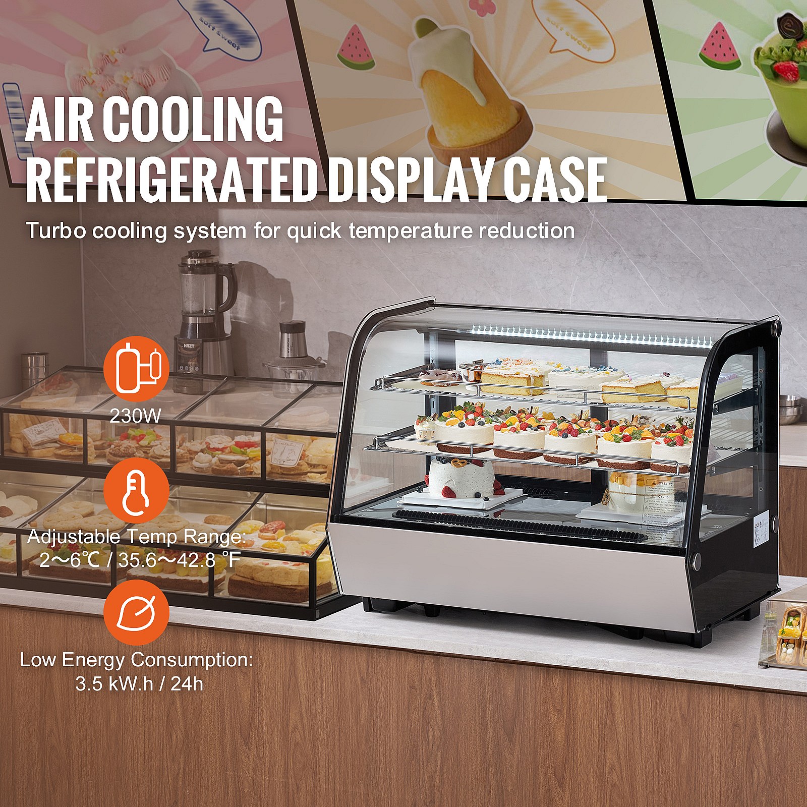 Vitrine Réfrigérée SucceBuy à 2 Niveaux, Réfrigérateur Commercial à 2 Niveaux, Vitrine de Comptoir pour Pâtisserie avec Éclairage LED, Refroidissement Turbo