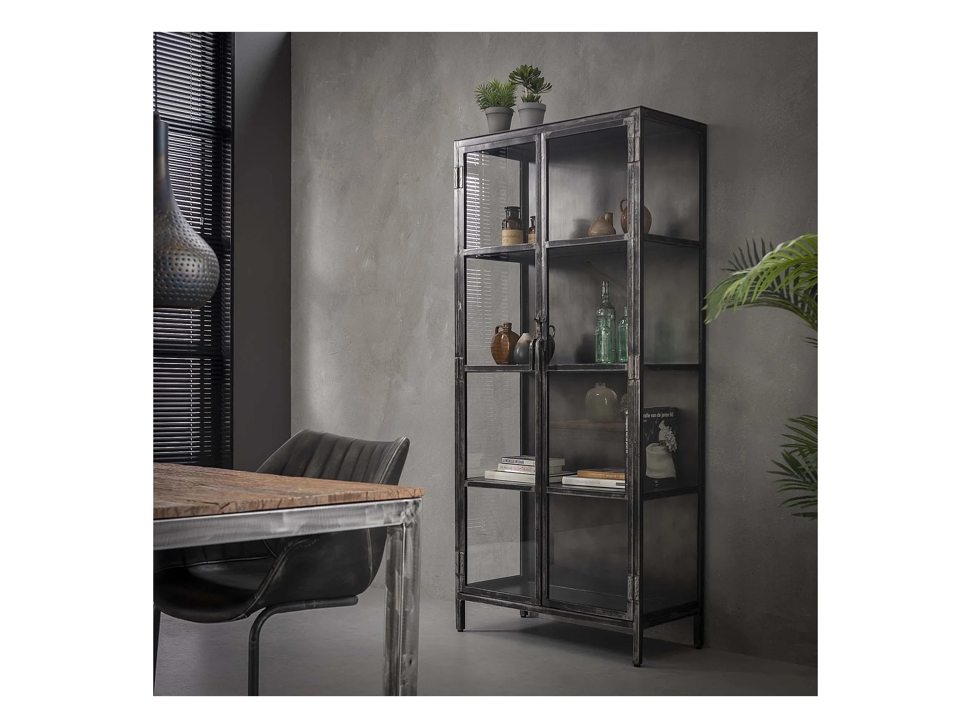 Vitrine Rift - Métal 2 portes - Gris - Largeur 90 cm