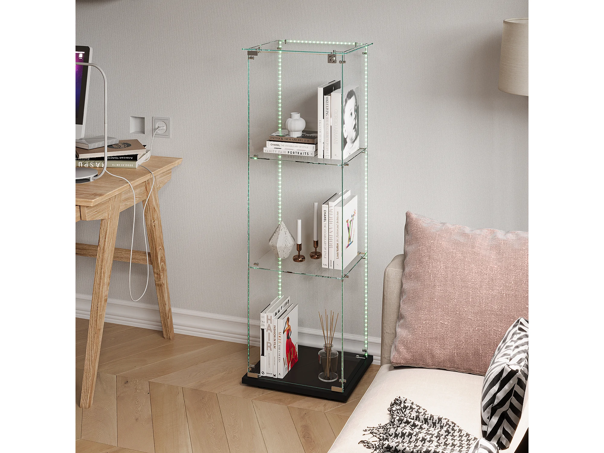 Vitrine en verre avec 4 étagères et portes doubles – Élégant meuble de salon
