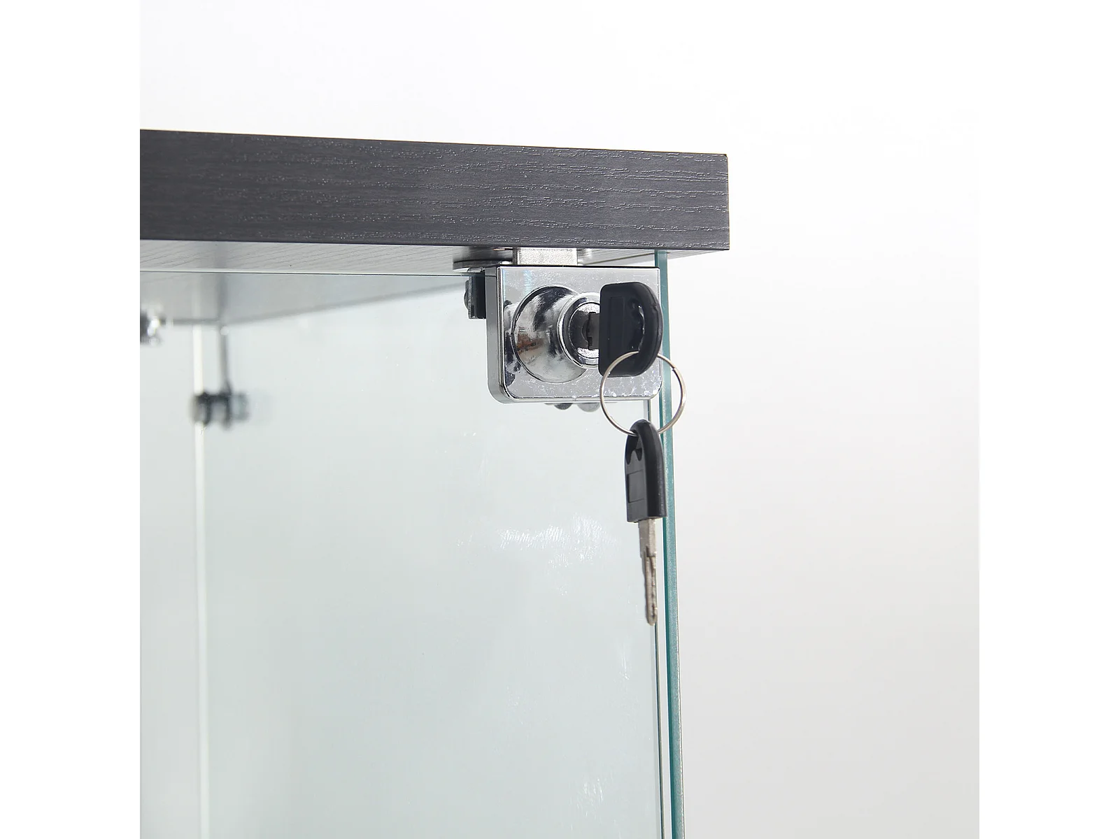 Vitrine sur pied en verre, 125 cm, avec LED, serrure, 1 porte 3 couches, transparente, noir