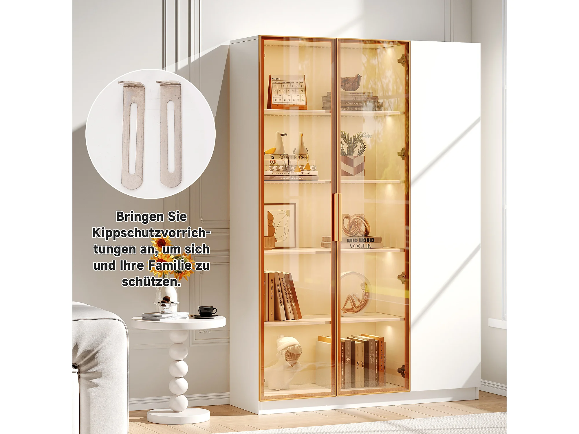 Vitrine vitrée haut - 110 x 35 x 165 cm - aevc 3 portes + Leds + étagères réglables - MDF - blanc