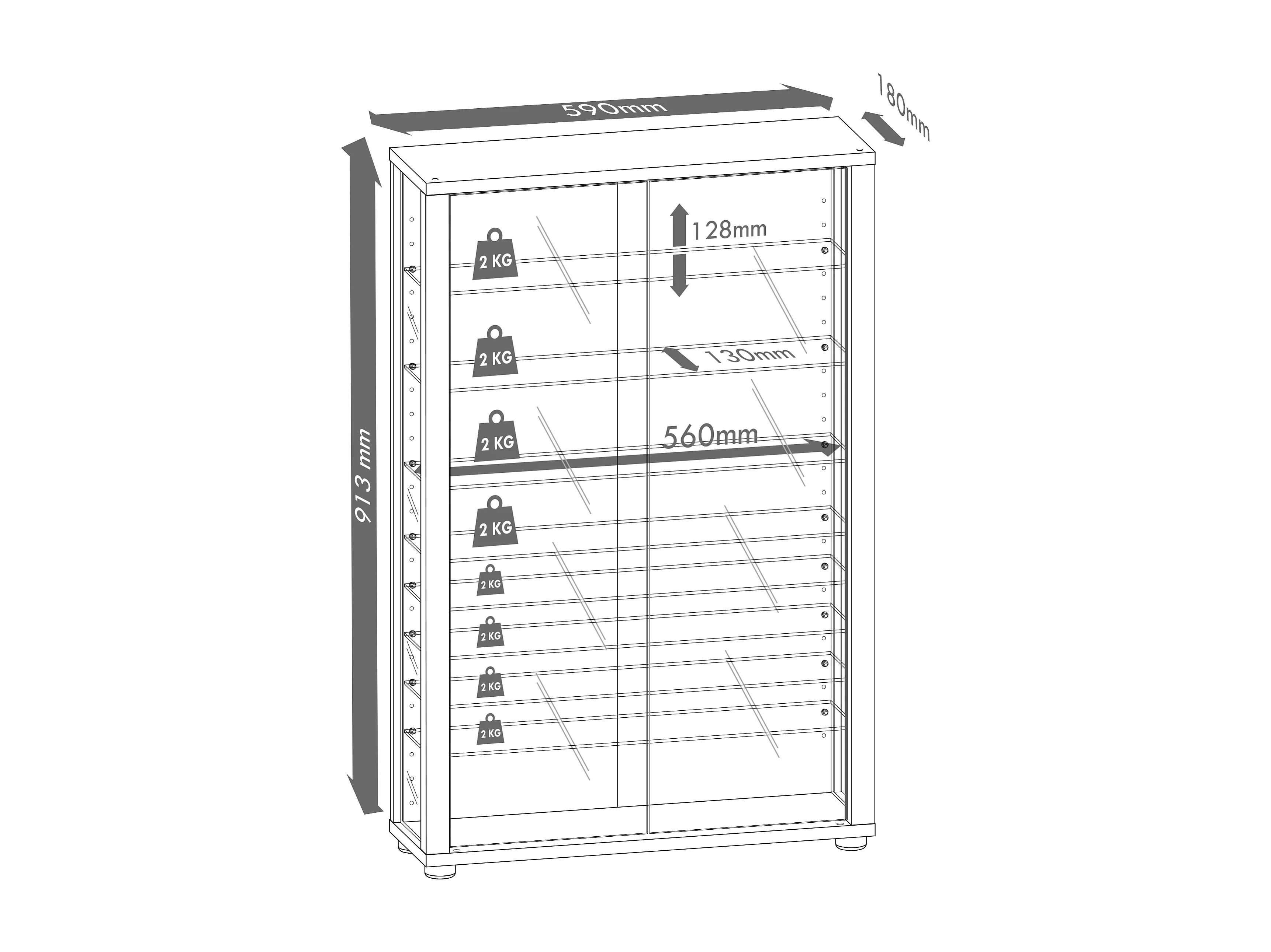 Wall display cabinet Vitrosa Nuts H. 91 x W. 59 x D. 18 cm