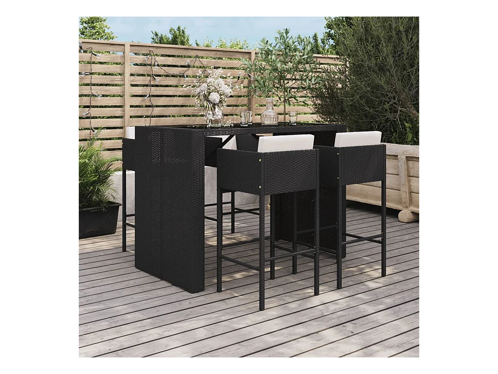 Vjorn Ensemble de bar de jardin 5 pcs avec coussins noir poly rotin