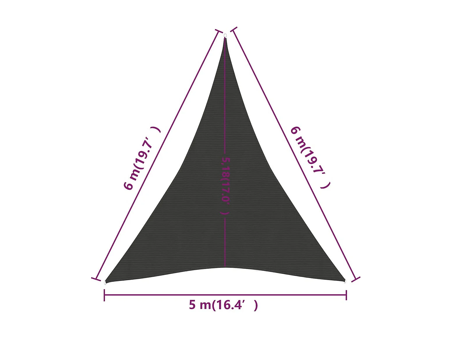 Voile d'ombrage 160 g/m² Anthracite 5x6x6 m PEHD