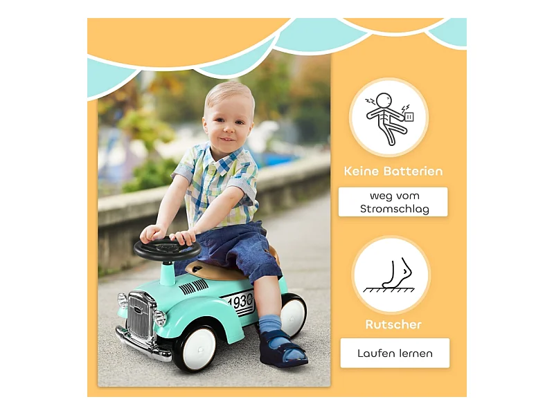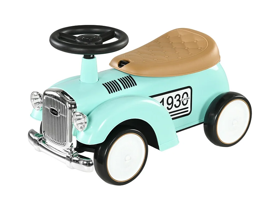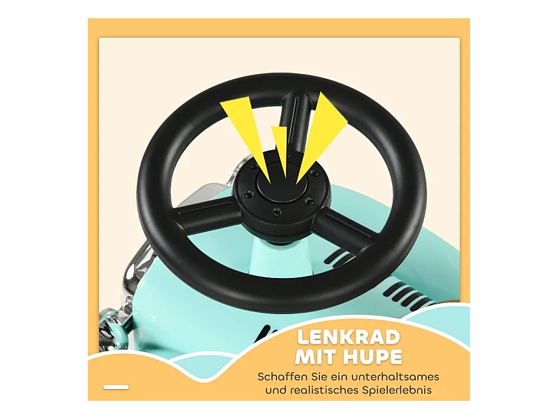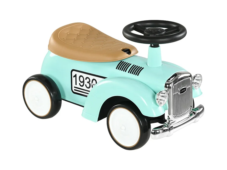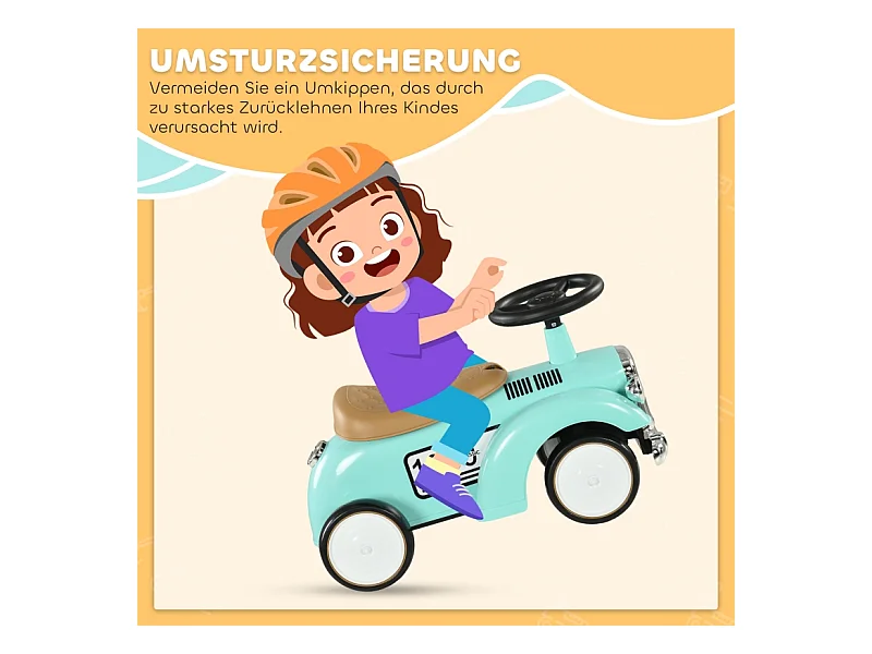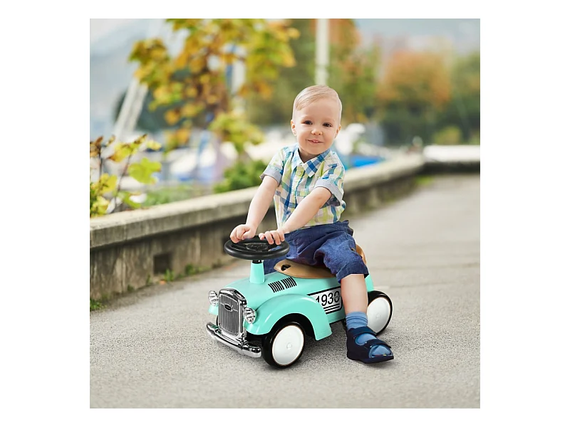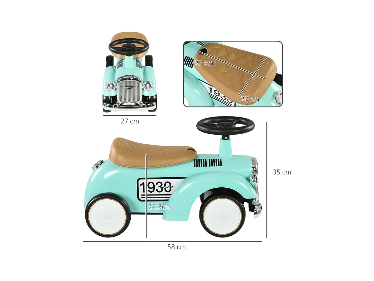Voiture à pédales vintage pour enfant, avec rangement secret, protection anti-bascule et klaxon, plastique, vert (58x27x35cm)