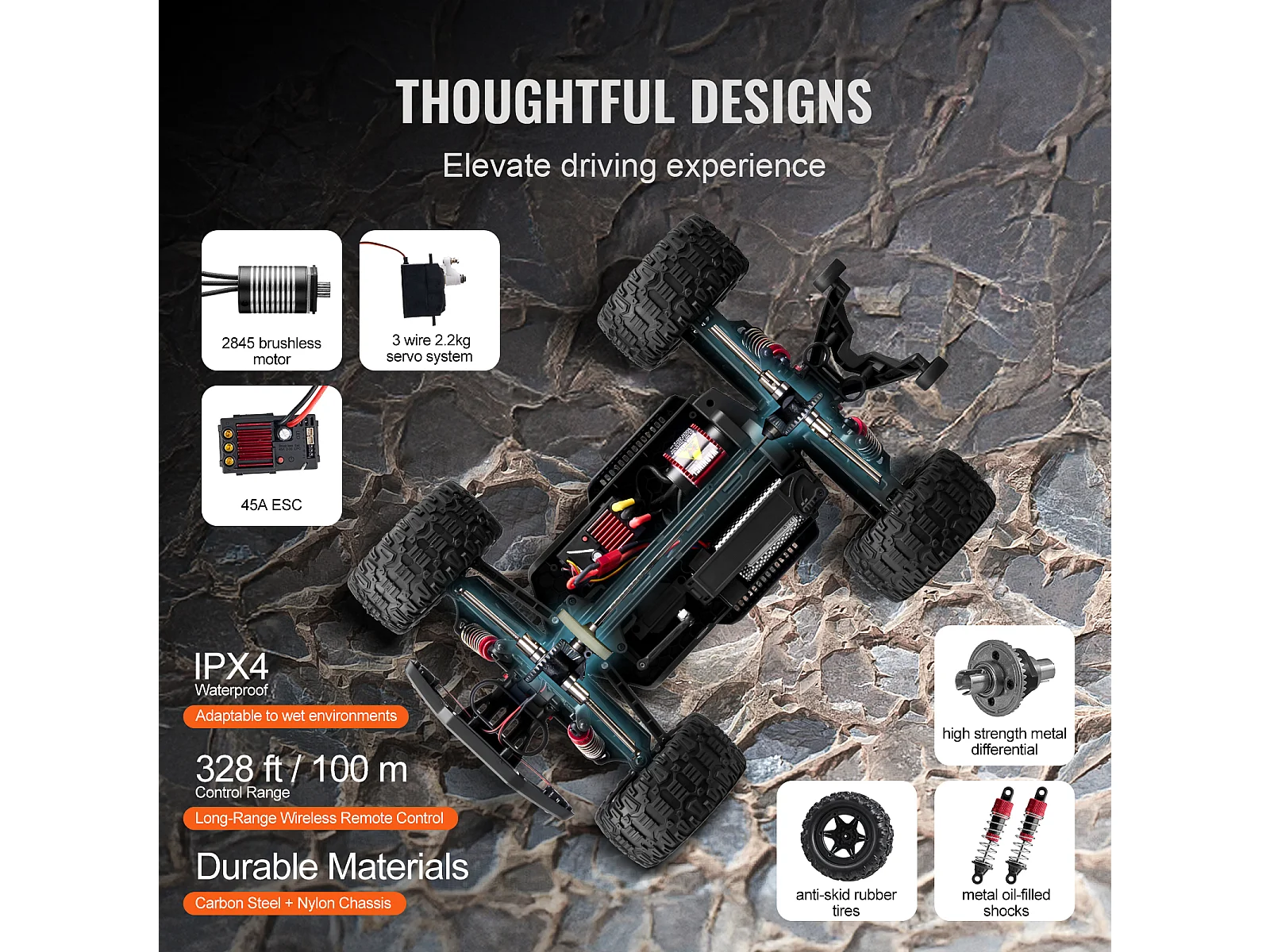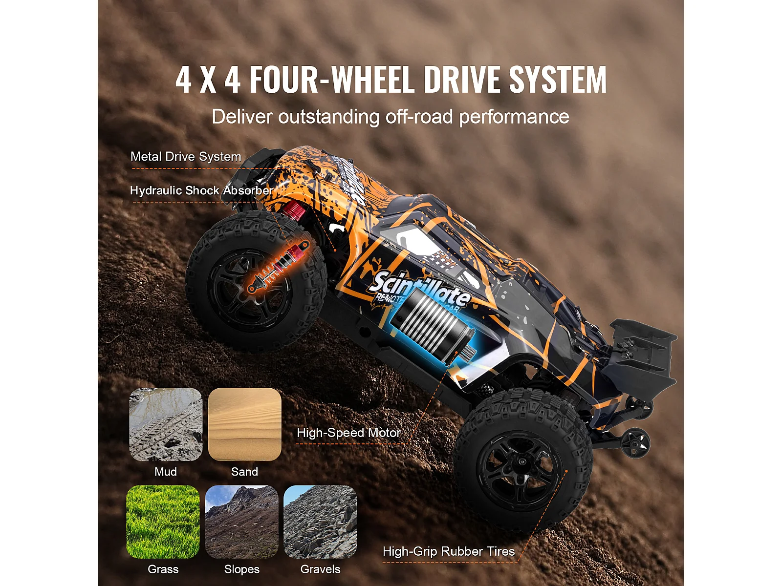 Voiture Electrique Enfants SucceBuy Voiture Tout-Terrain Télécommandée 4 Roues Motrices à l'Échelle 1:10 pour Enfants