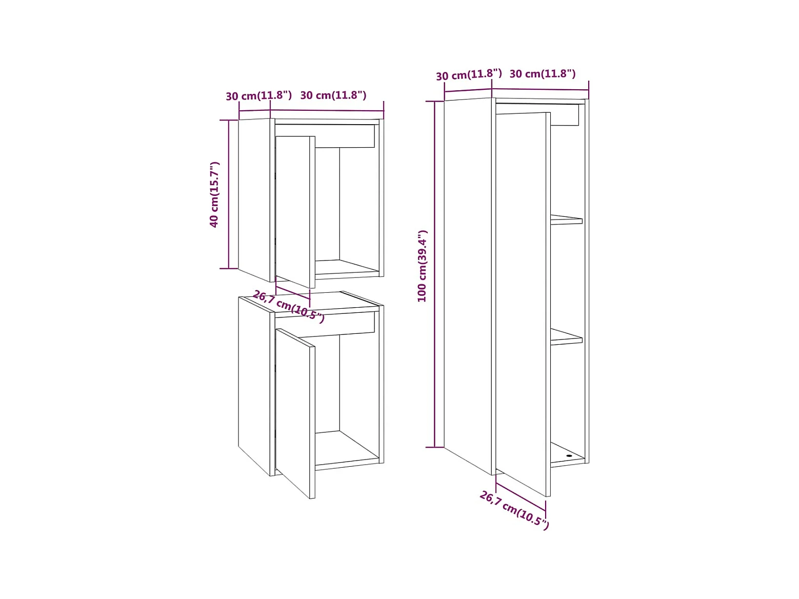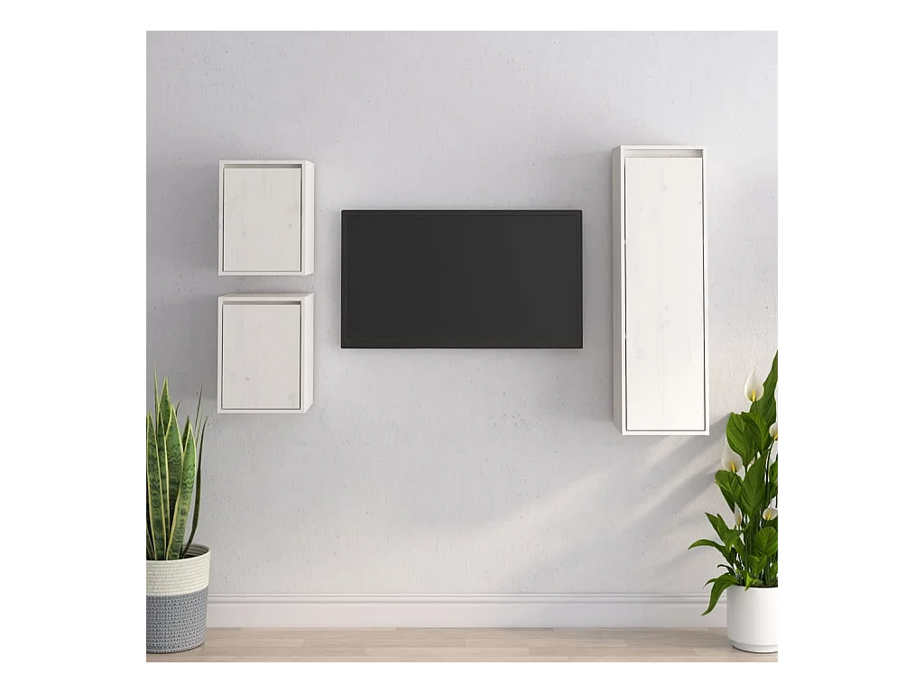 Volri Meubles TV 3 pcs Blanc Bois massif de pin
