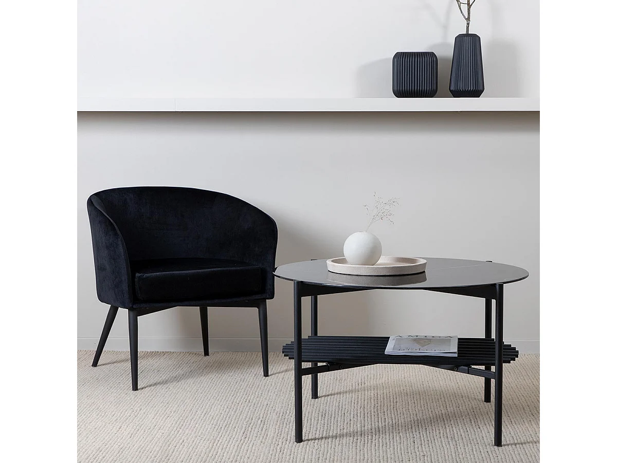 Table Basse en Verre "Von Staf" 80cm Noir Marbre