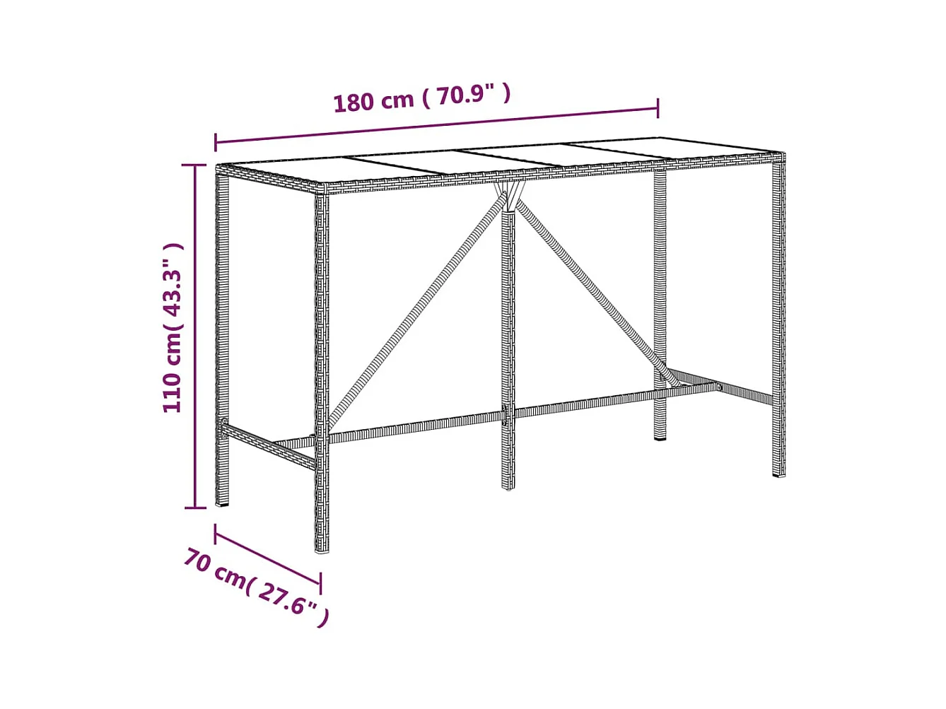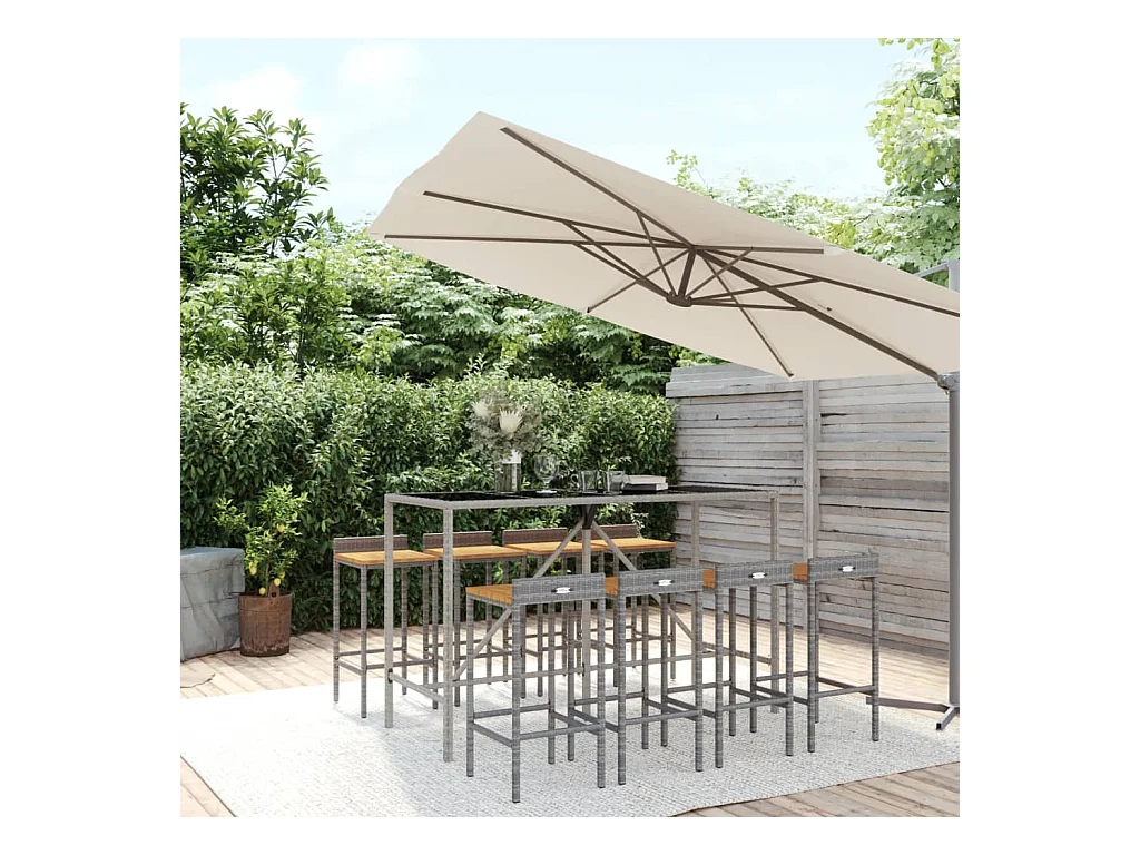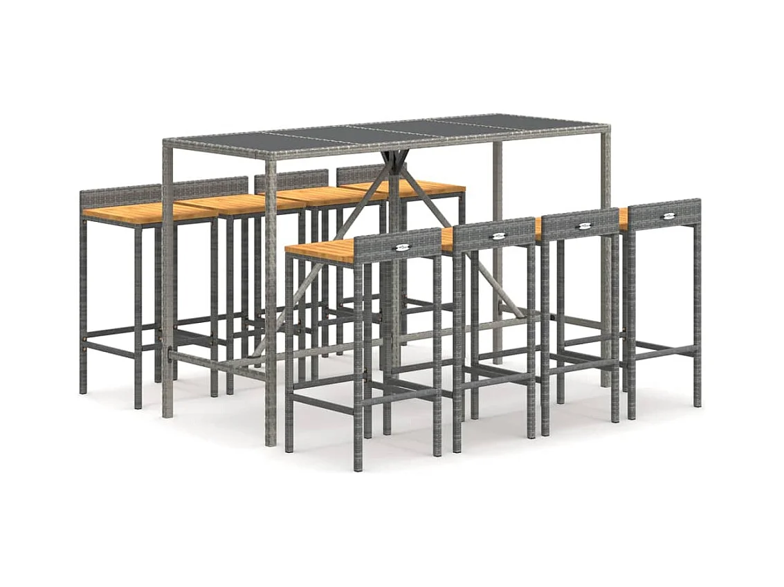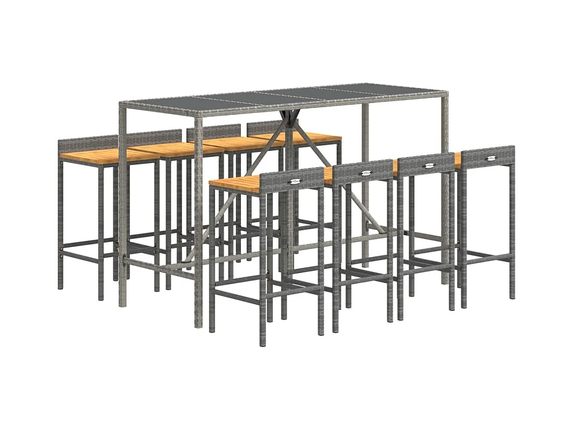Allouez Ensemble de bar jardin 9 pcs gris poly rotin/bois massif acacia