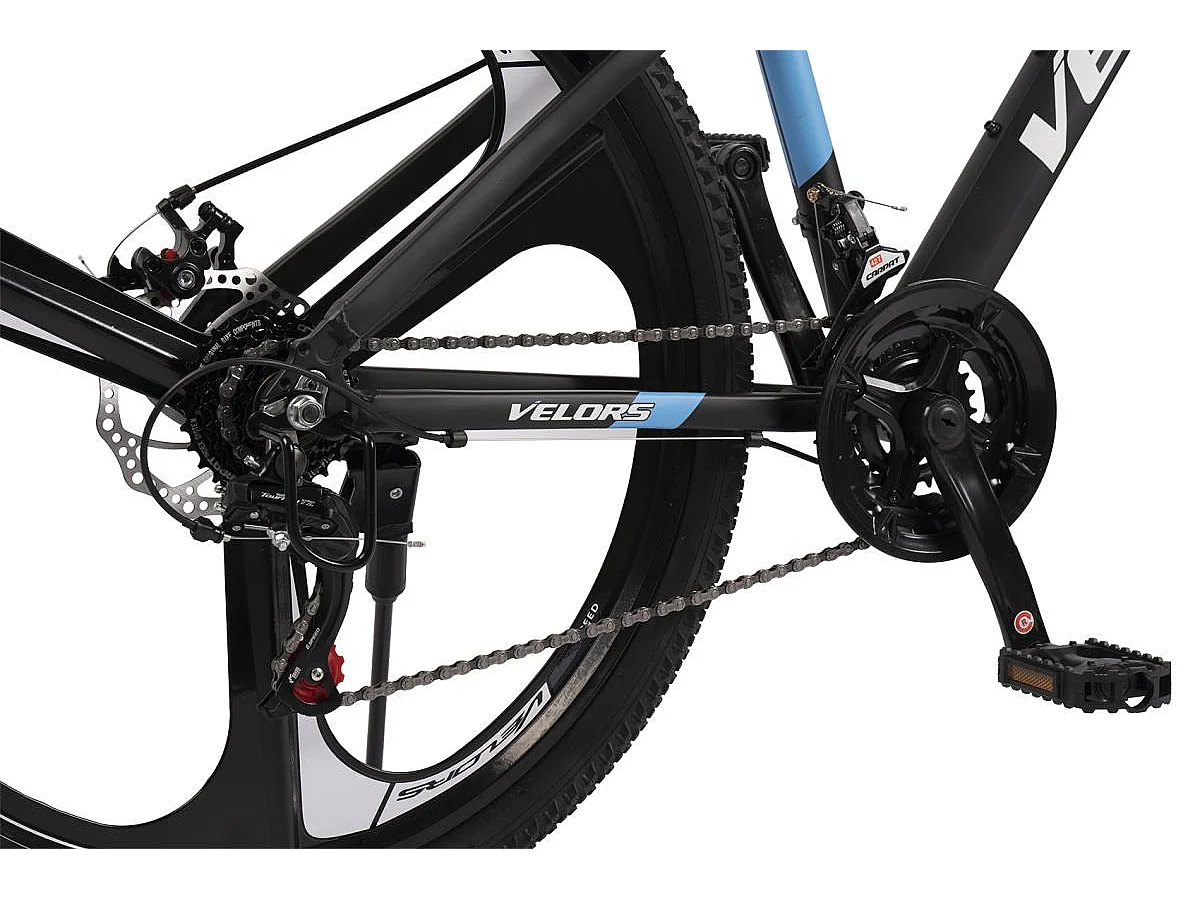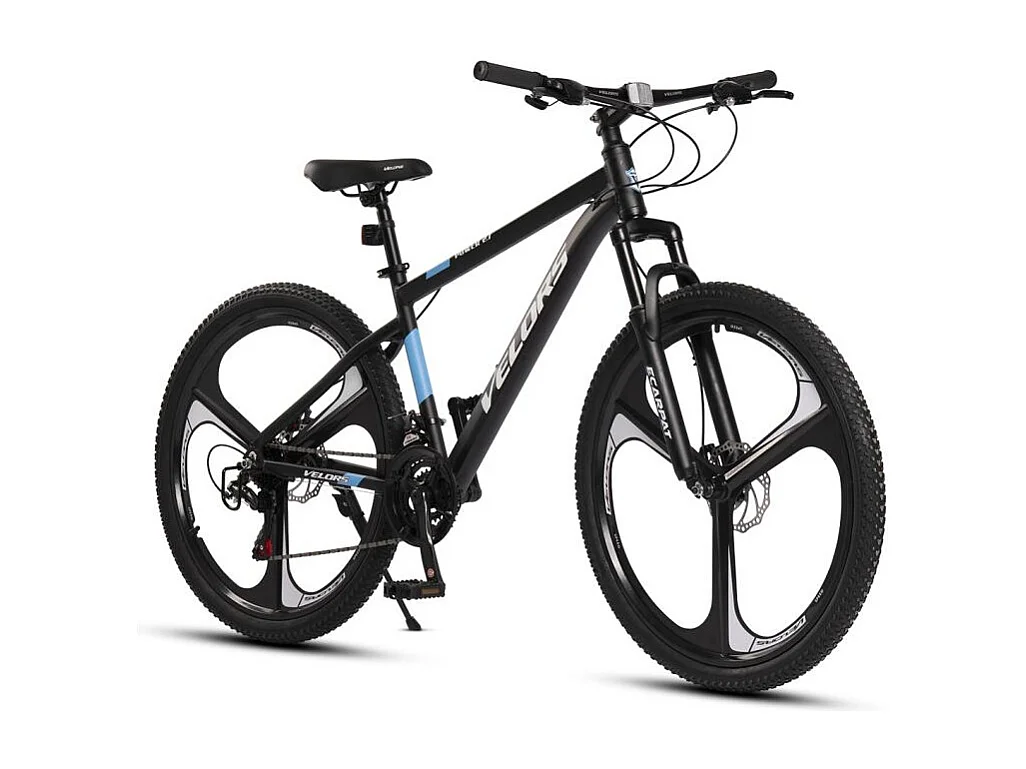VTT transmission 21 vitesses, semi-rigide en aluminium, fourche à suspension, freins à disque mécaniques, pré-assemblé à 85 % (141 x 73 x 20 cm)