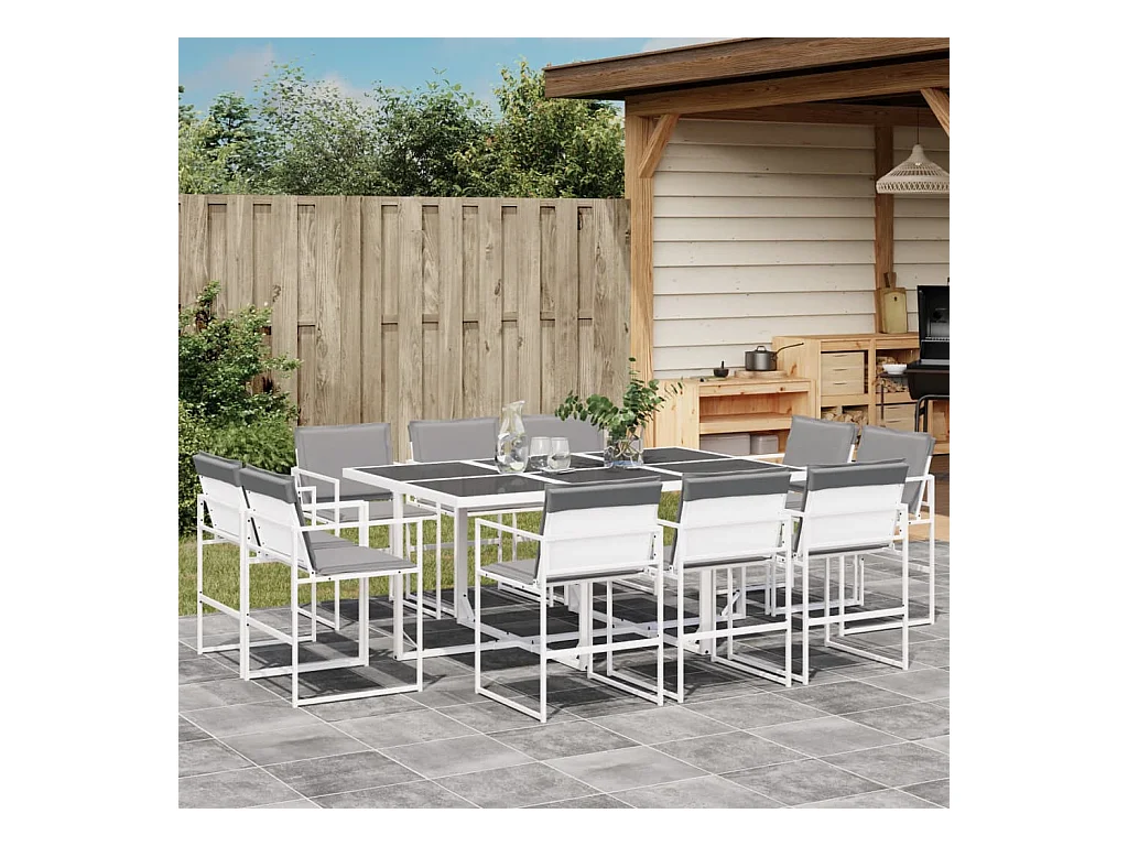 Dunkitt Ensemble à manger de jardin avec coussins 11pcs blanc textilène